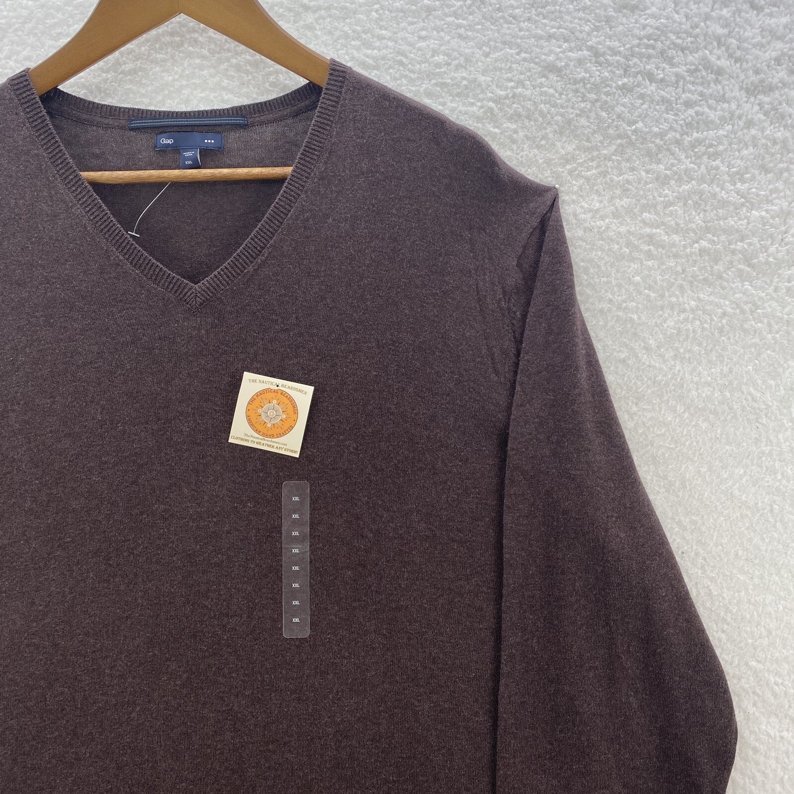 GAP Sweater Mens 2XL Brown V-Neck Long Sleeve Preppy Pullover All Cotton NWT