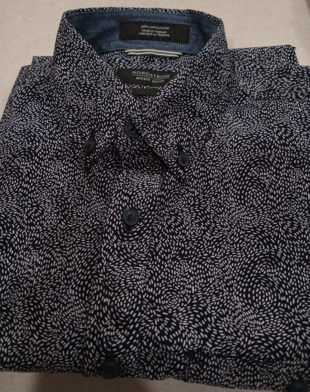 NORDSTROM MEN'S SHOP TRIM FIT SHIRT Size S Short Sleeve Buttons down 100 Cotton