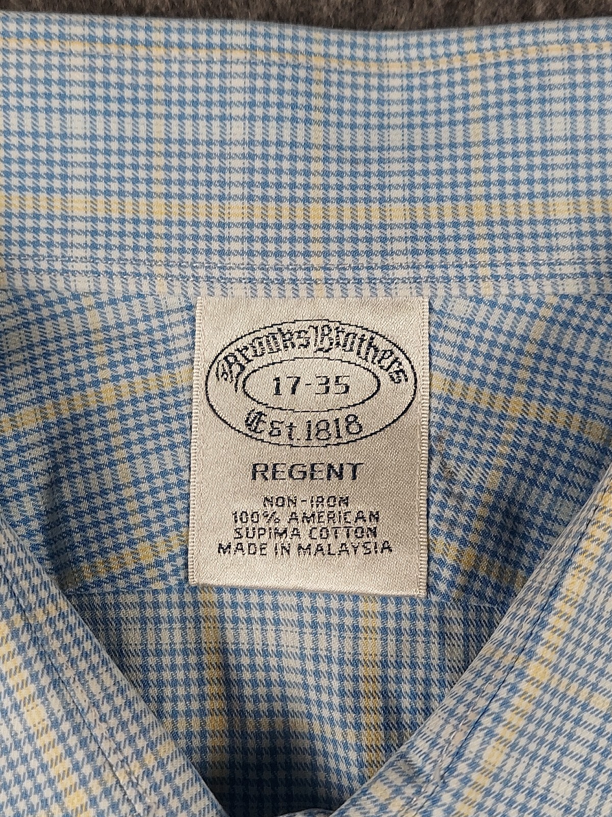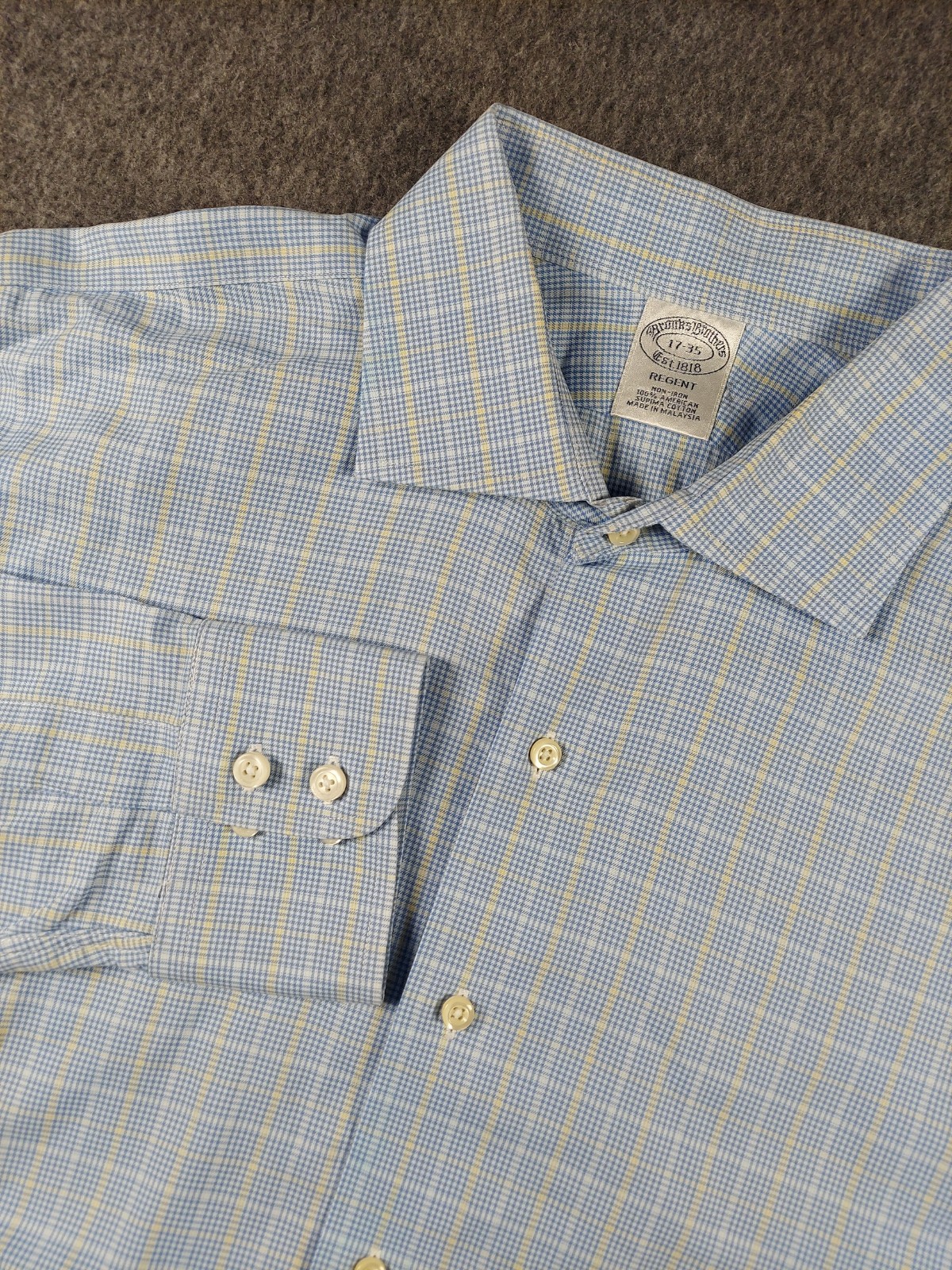 Brooks Brothers Regent Dress Shirt Mens 17 - 35 Blue Plaid 1818 Non-Iron Supima