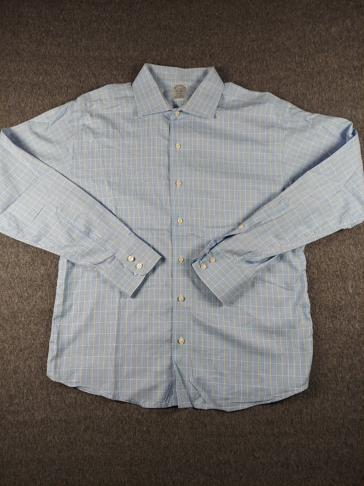 как выглядит Brooks Brothers Regent Dress Shirt Mens 17 - 35 Blue Plaid 1818 Non-Iron Supima фото