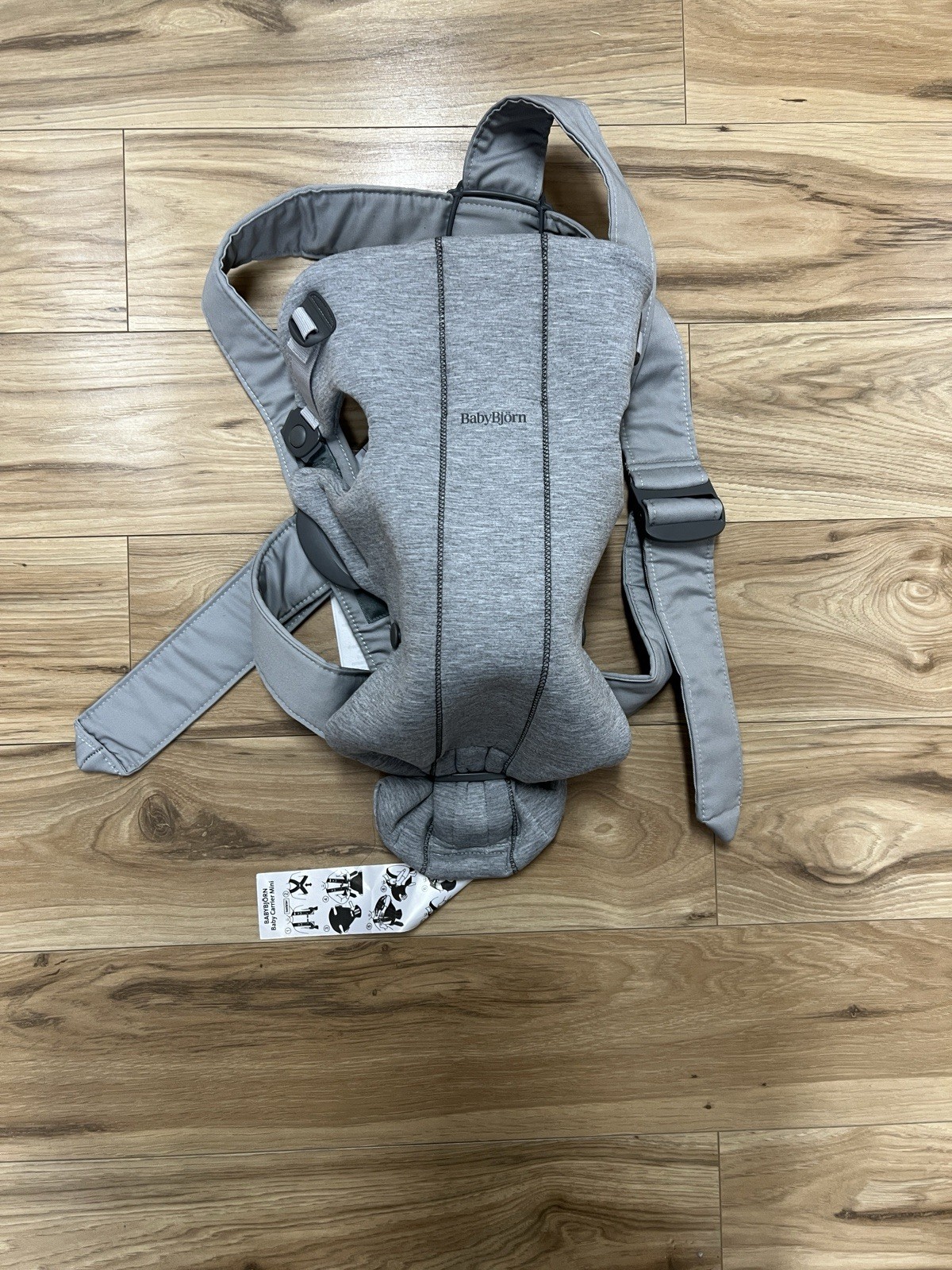 как выглядит BabyBjorn Baby Carrier Mini Light Gray Soft Adjustable Hands-Free Lightly Used фото