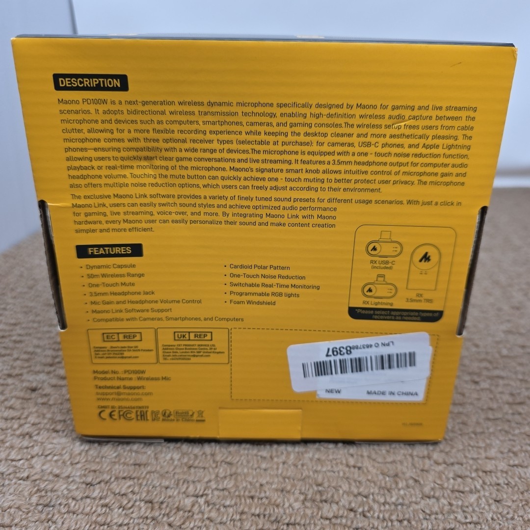 Maono PD100W Wireless Dynamic Desktop Microphone USB-C RGB Black Streaming Mic