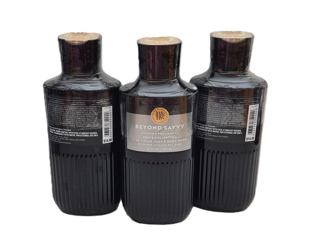 Bath Body Works Beyond Savvy 3 in 1 Hair, Face Body Wash 10 fl oz 3 Pack