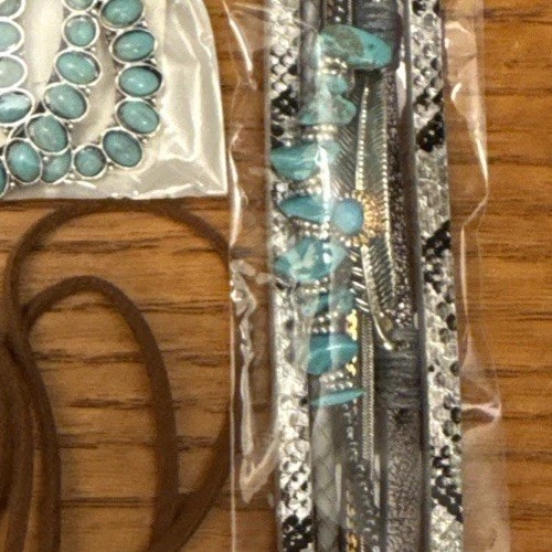 как выглядит Western Turquoise Jewelry Set Earrings, Necklace, Bracelet фото