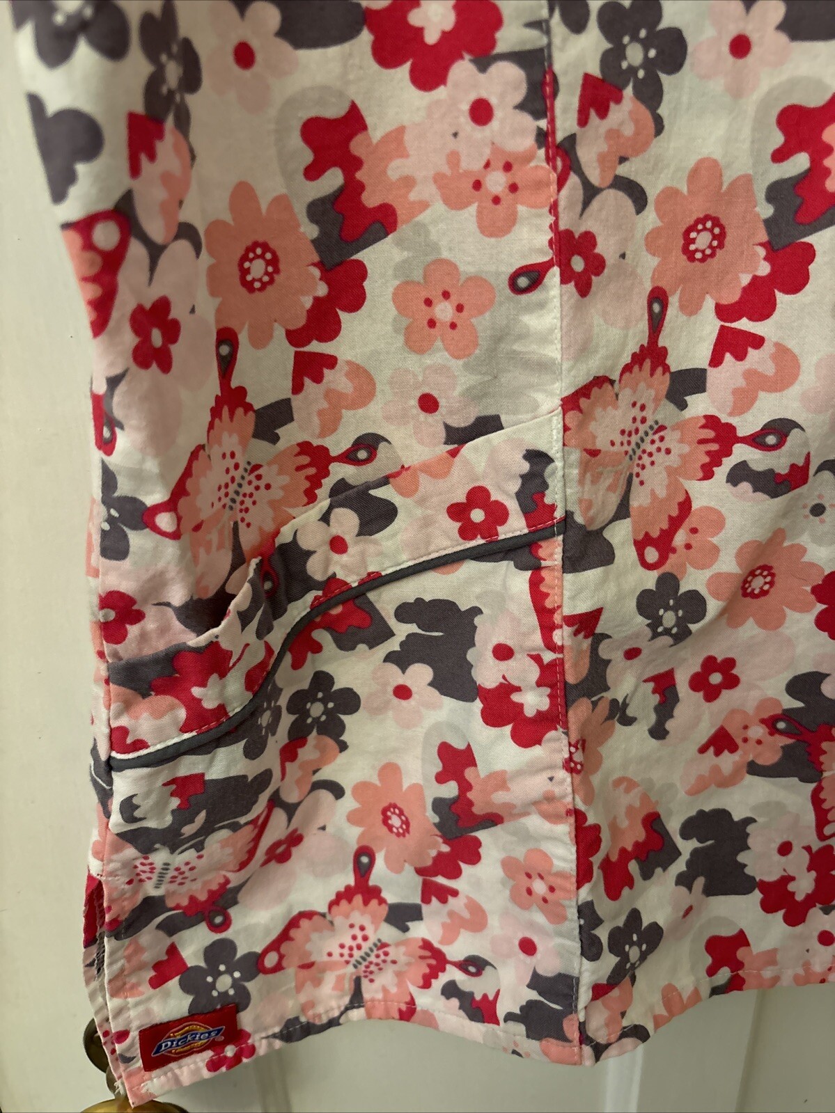 Dickies Classic Floral Scrub Top Pockets V neck Womens Shirt USA S