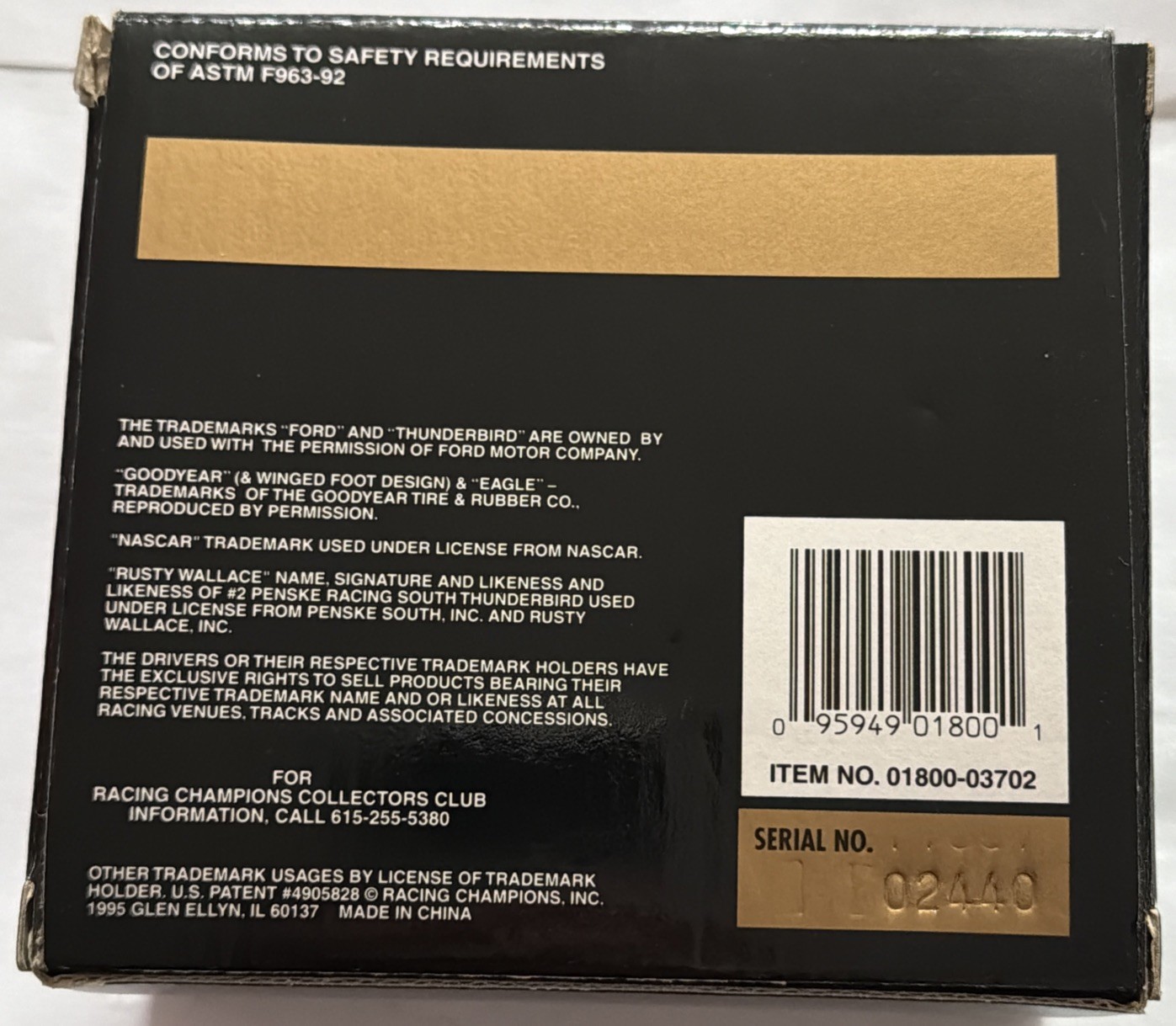 Racing Champions 2 Rusty Wallace Ford Motorsports 1995 Nascar Thunderbird 1:64