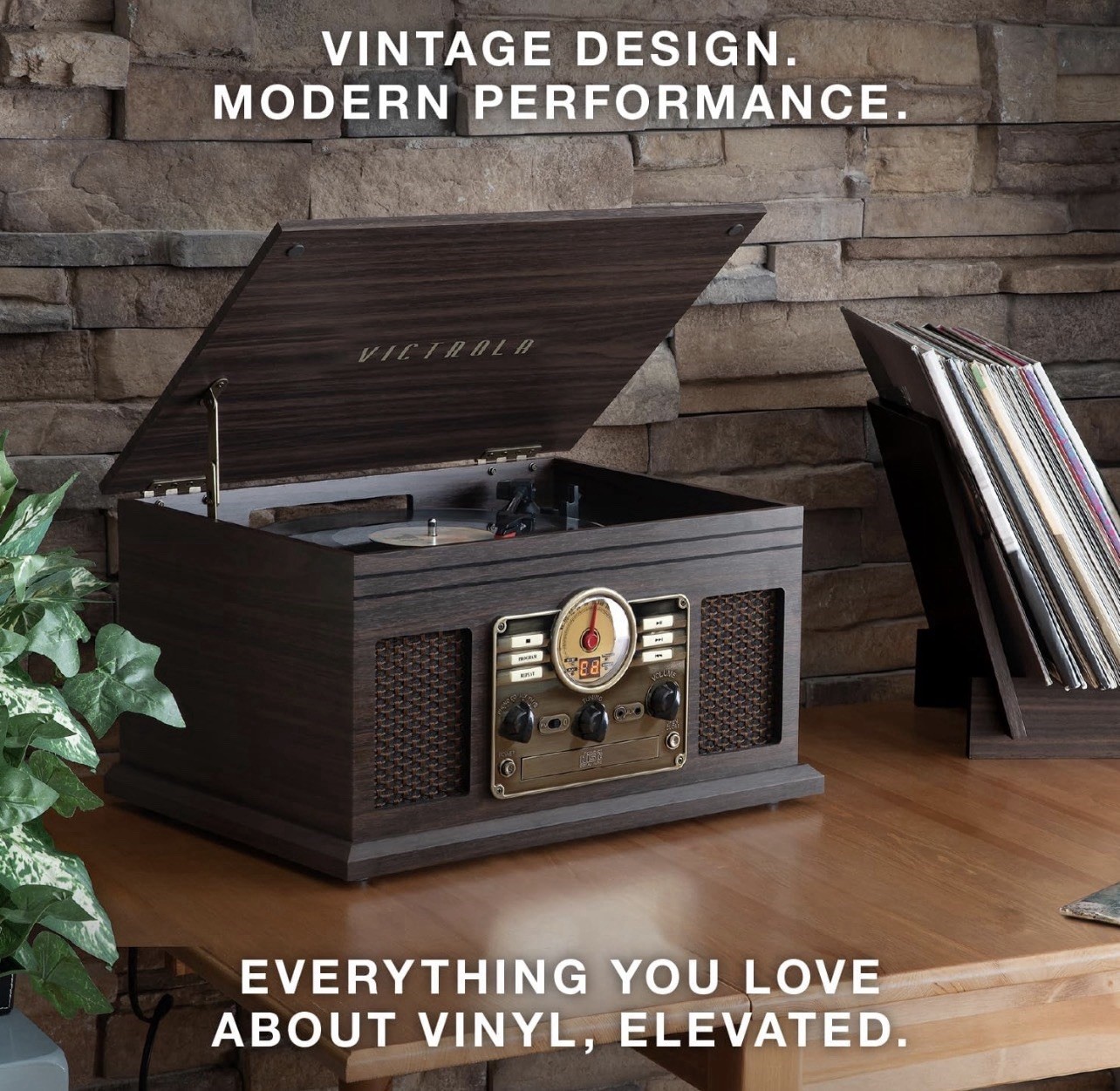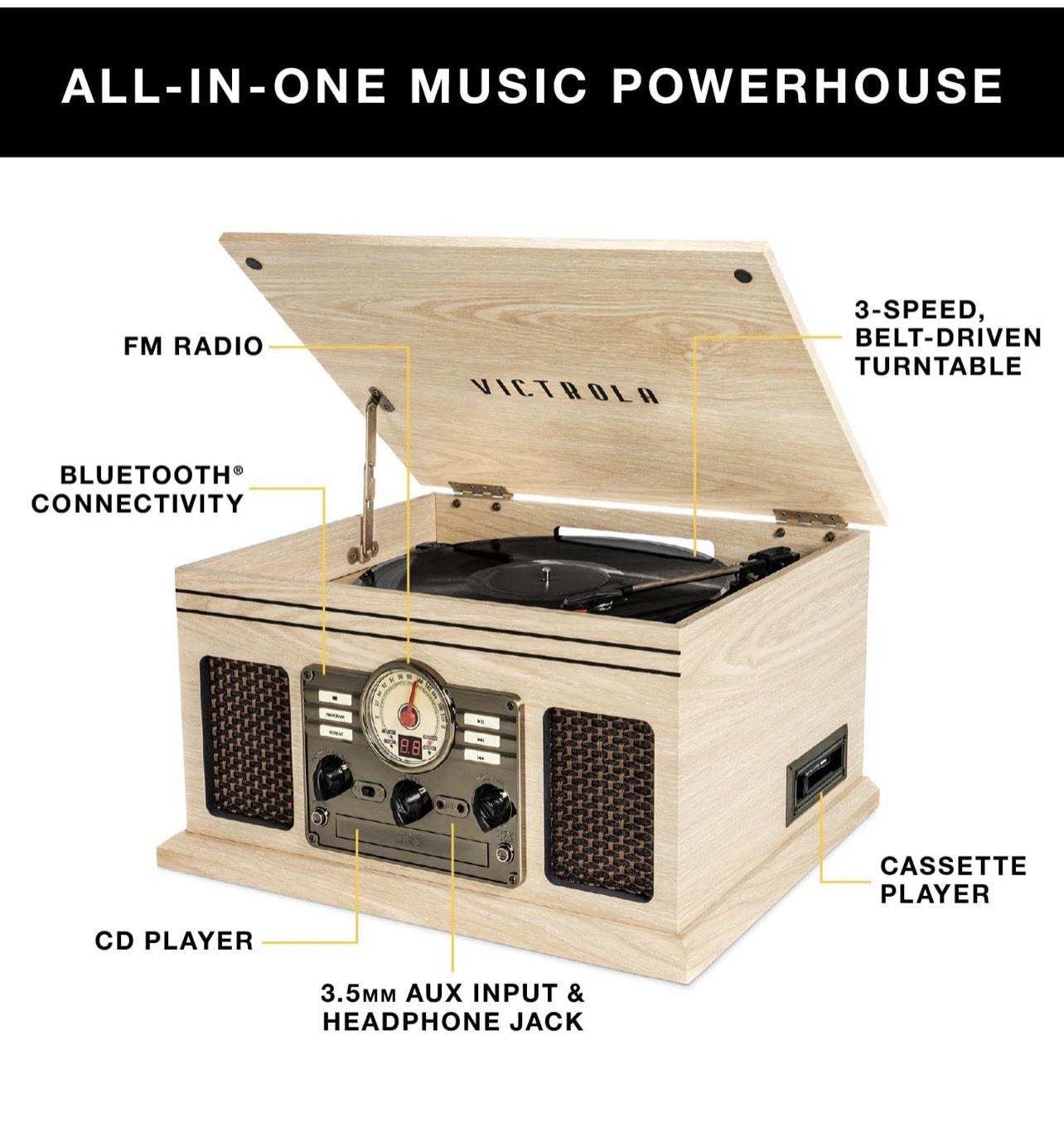 Victrola Quincy 6 in 1 Record Player Bluetooth CD Cassette AM FM Radio