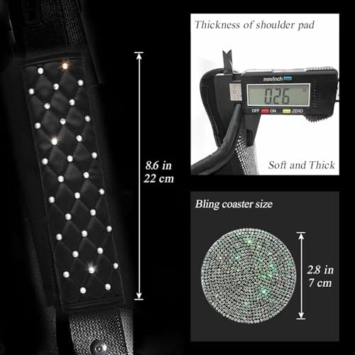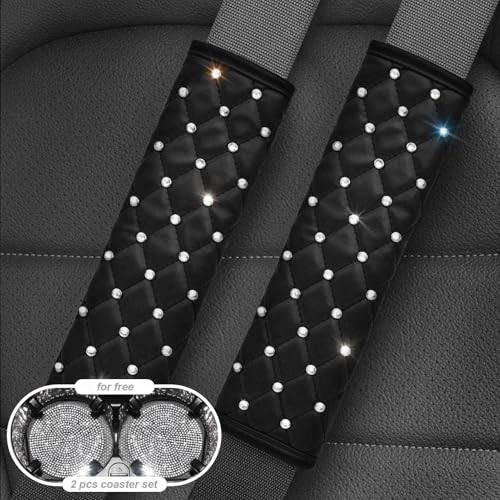 2PCS Bling Car Seatbelt Strap Covers for Women Girls - Crystal B-Crystal