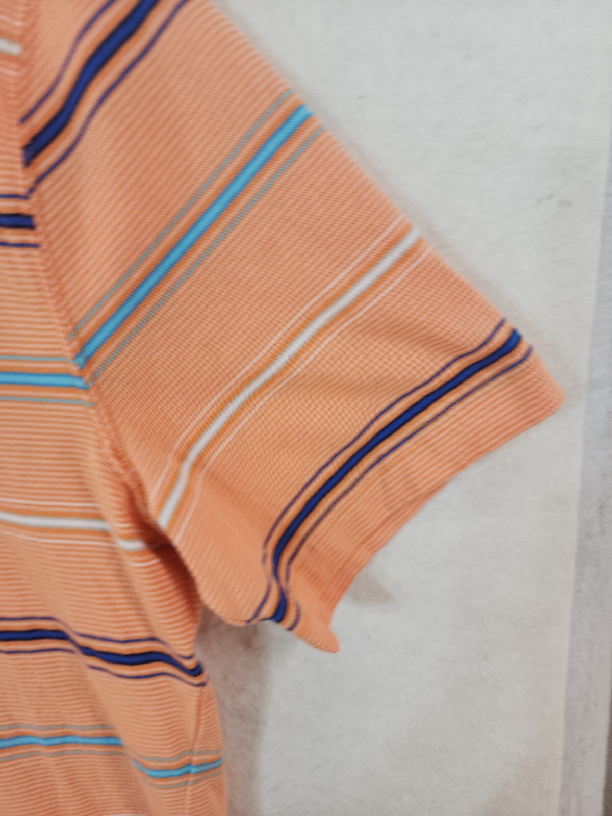 как выглядит Saddlebred Orange Striped Lightweight Cotton Blend Polo Shirt Mens Large фото