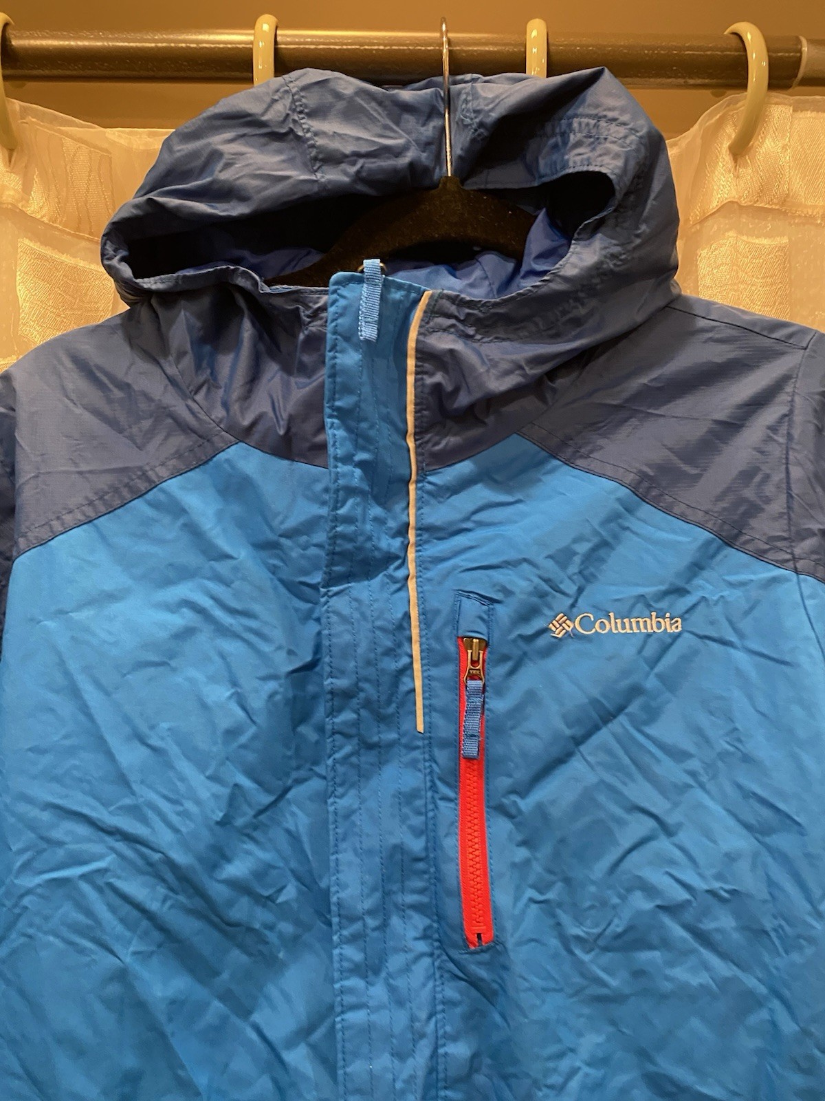 как выглядит Columbia Boys Rain Jacket Large 14/16 , Blue, Full Zip, Windbreaker фото