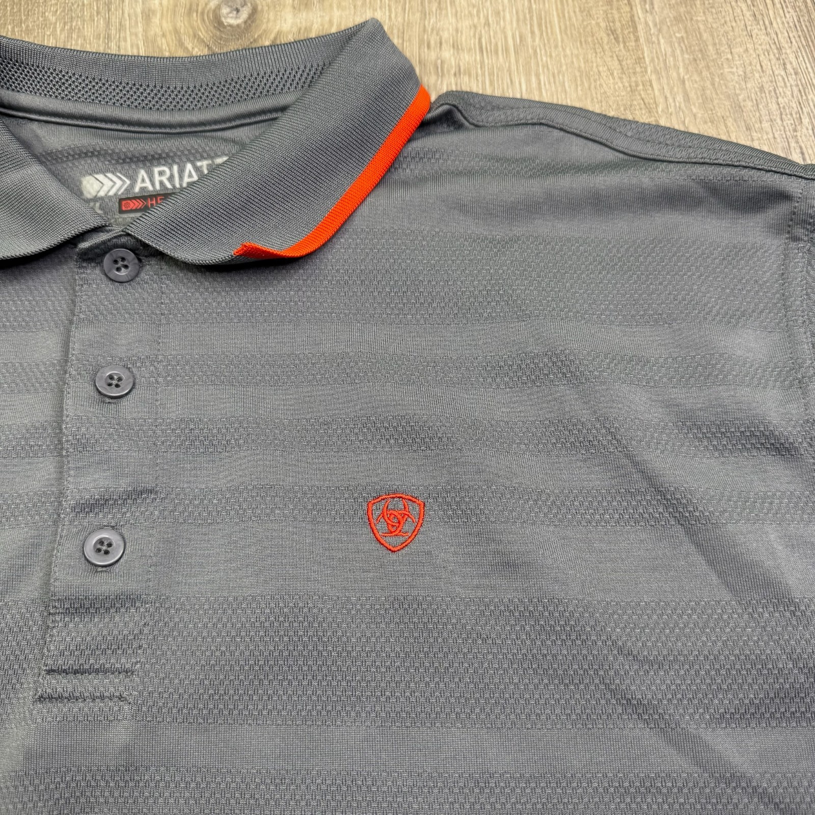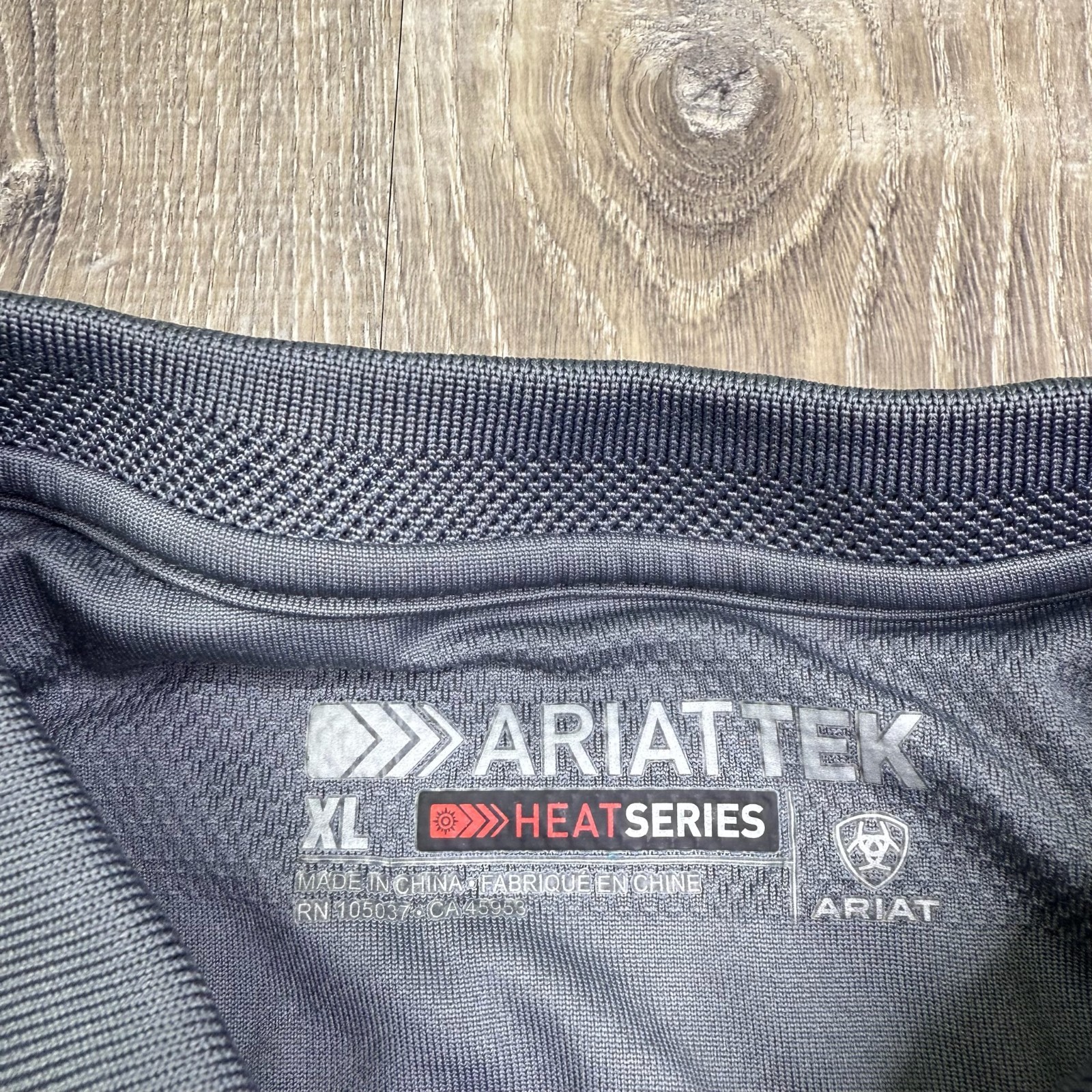 Ariat Tek Heat Series Mens Gray Striped Performance Polo Shirt Size XL