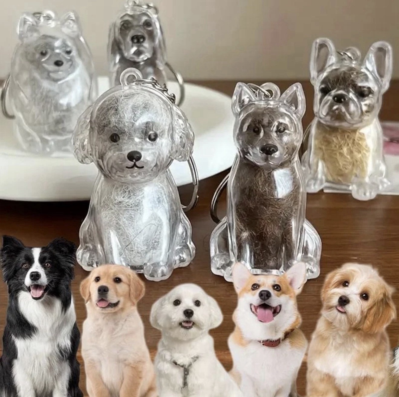Pet Memorial Transparent Dog Keychain Puppy Keepsake Charm for Fur Hair Gift
