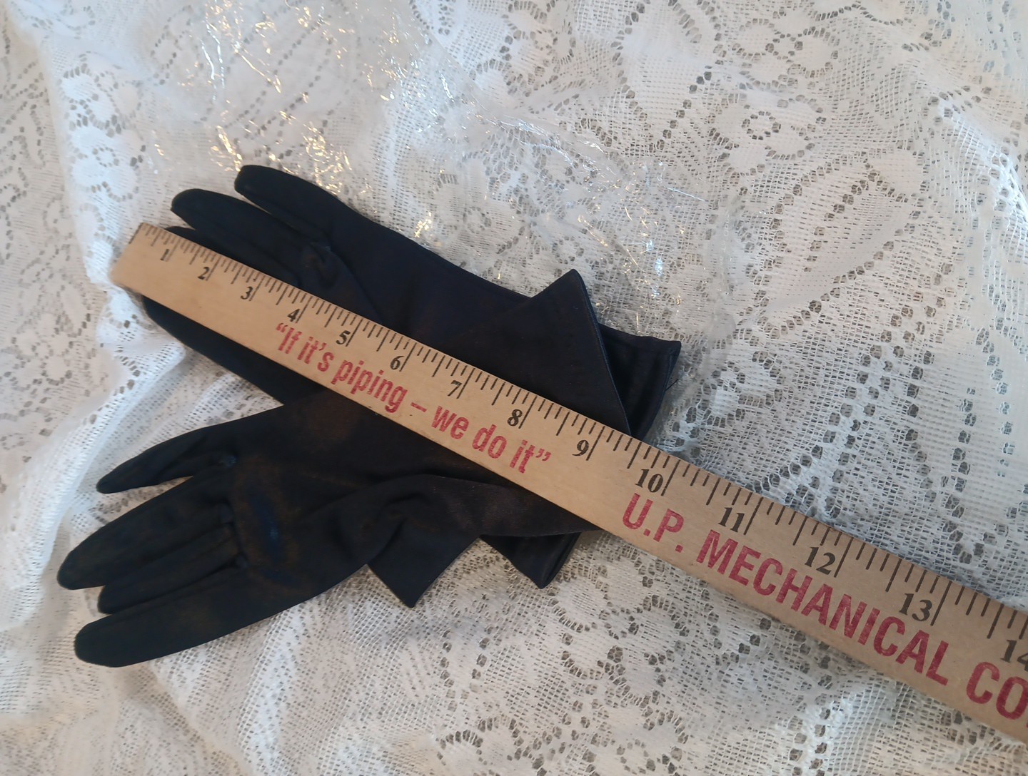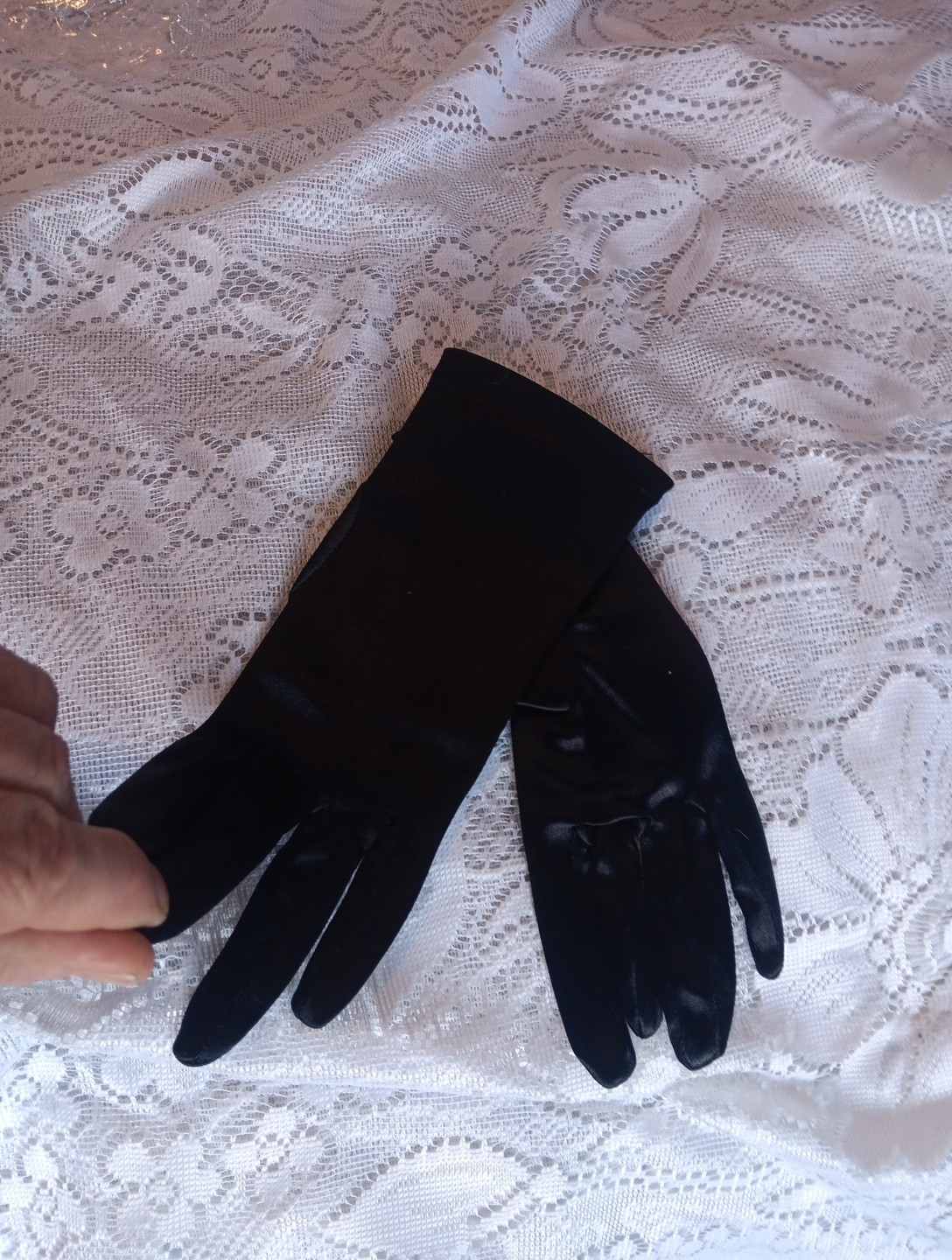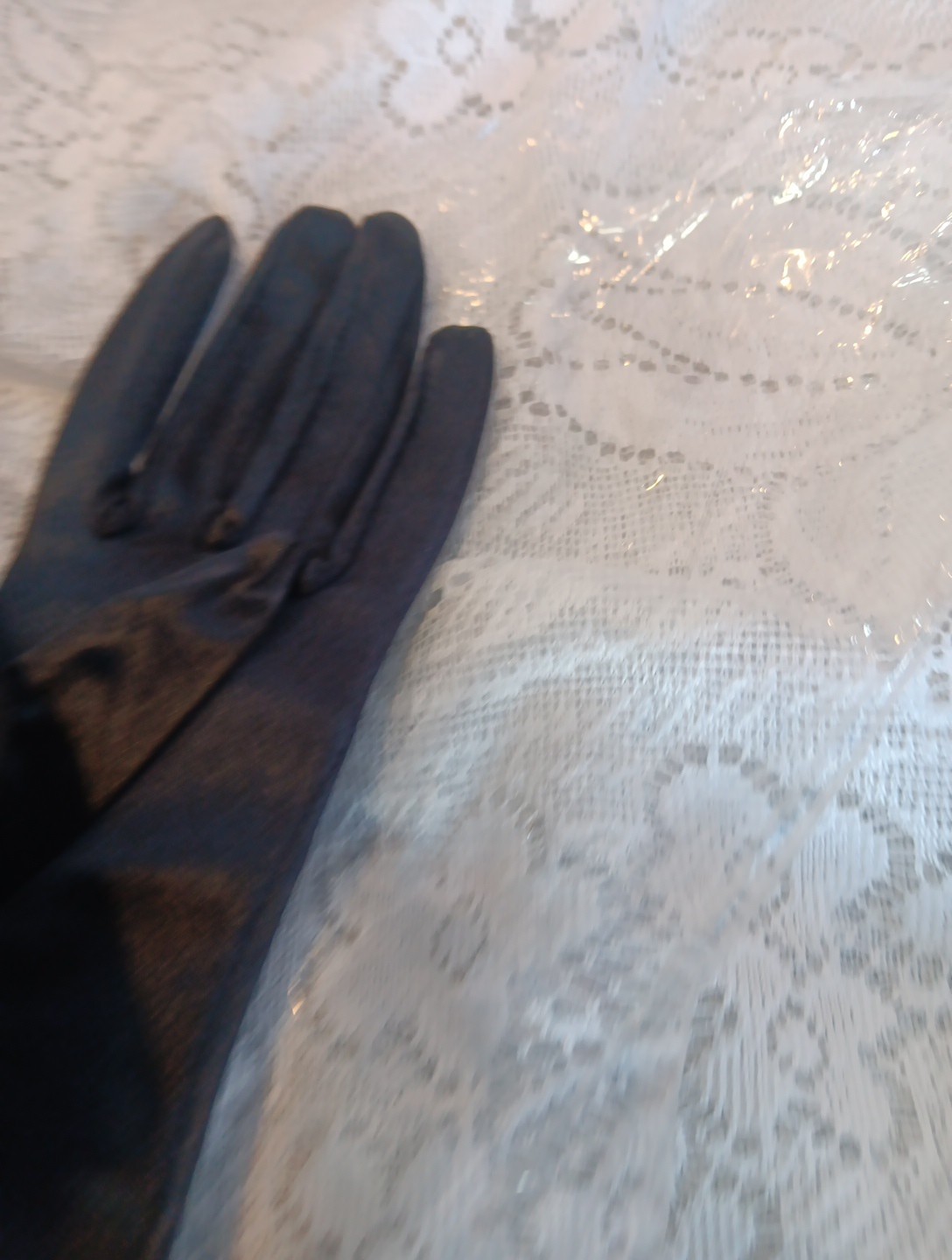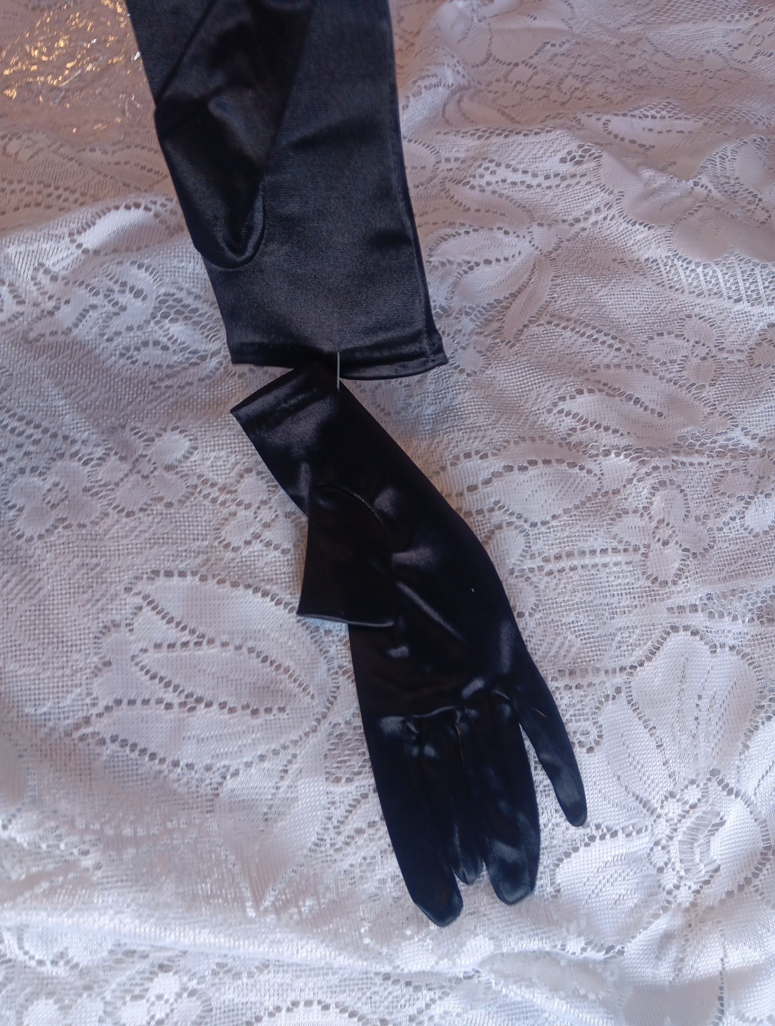 Women's Evening Party Formal Gloves 9.5 Long Black Satin Finger Mittens New