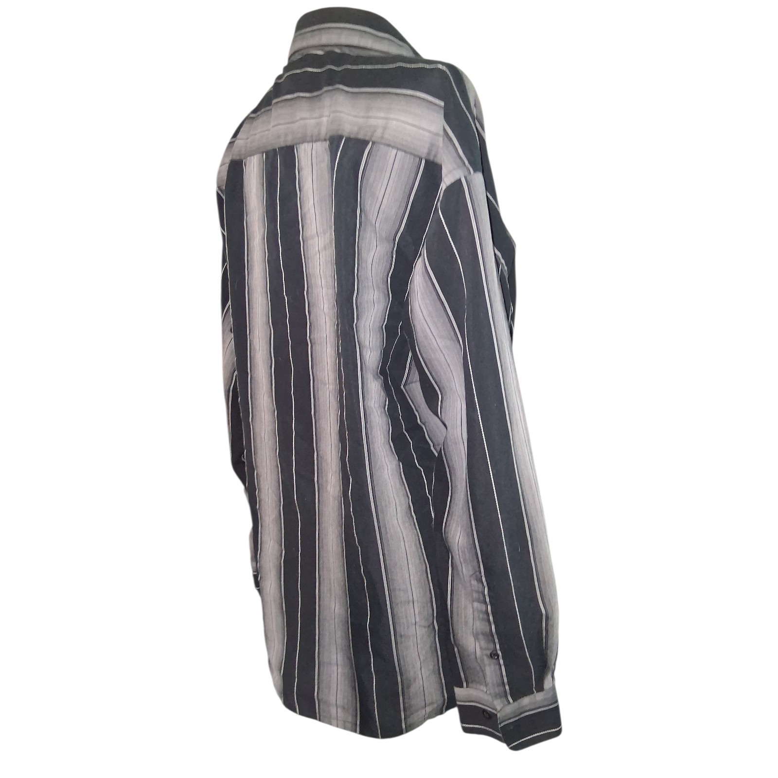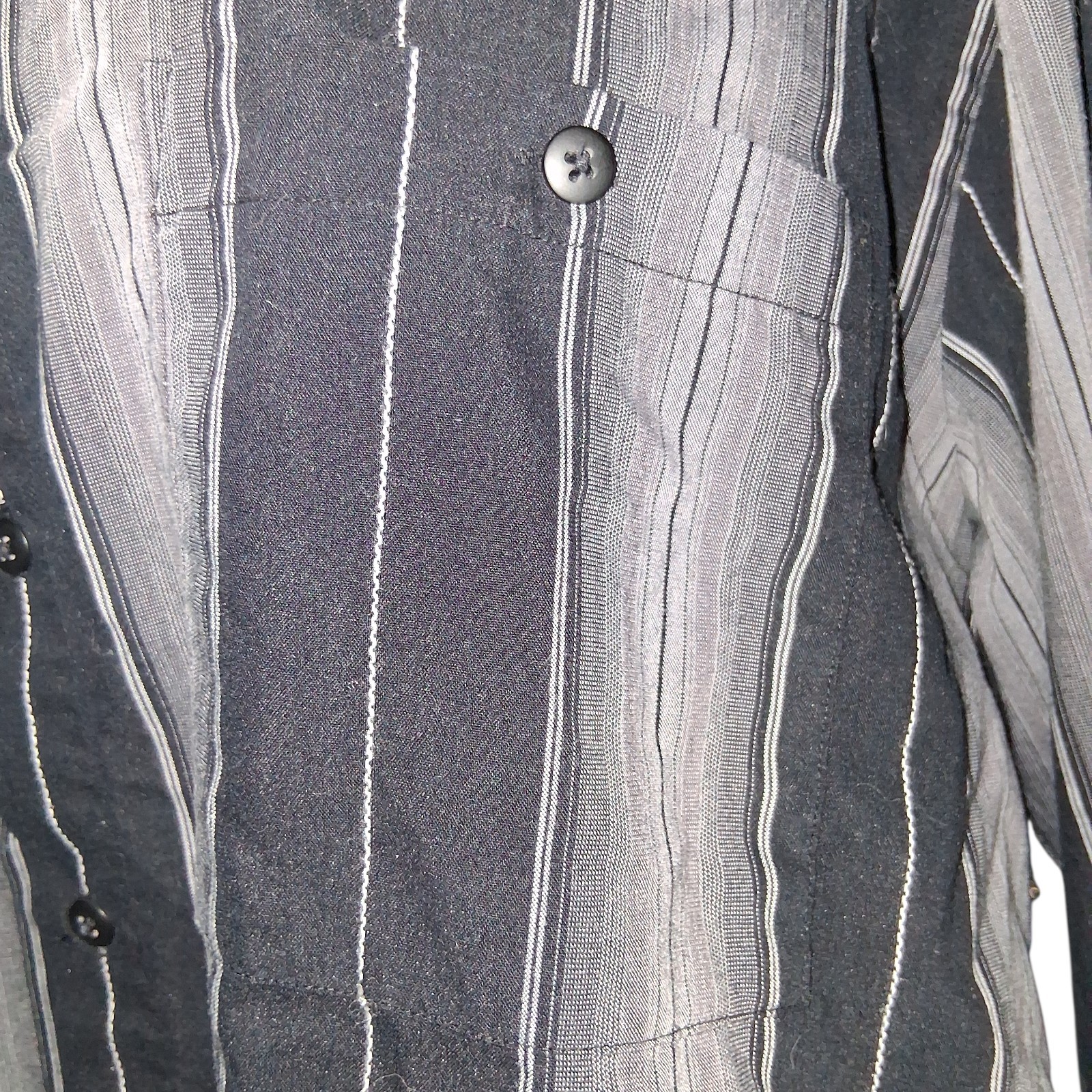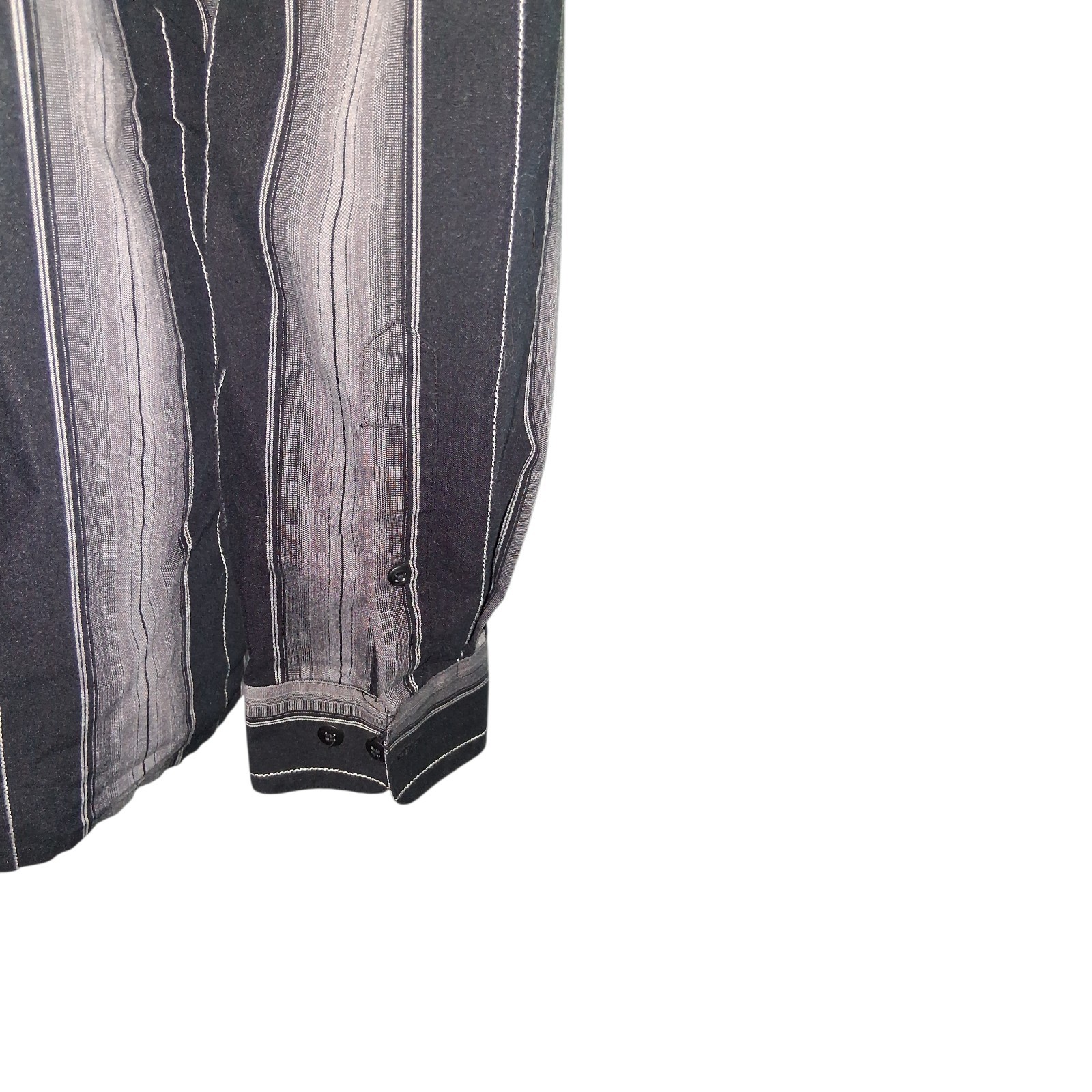 Pierre Cardin Black Gray Striped Button Down Striped Shirt Size Large Men's