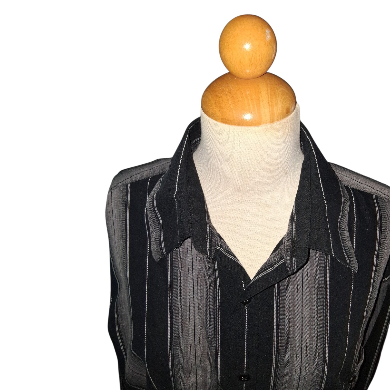 как выглядит Pierre Cardin Black Gray Striped Button Down Striped Shirt Size Large Mens фото