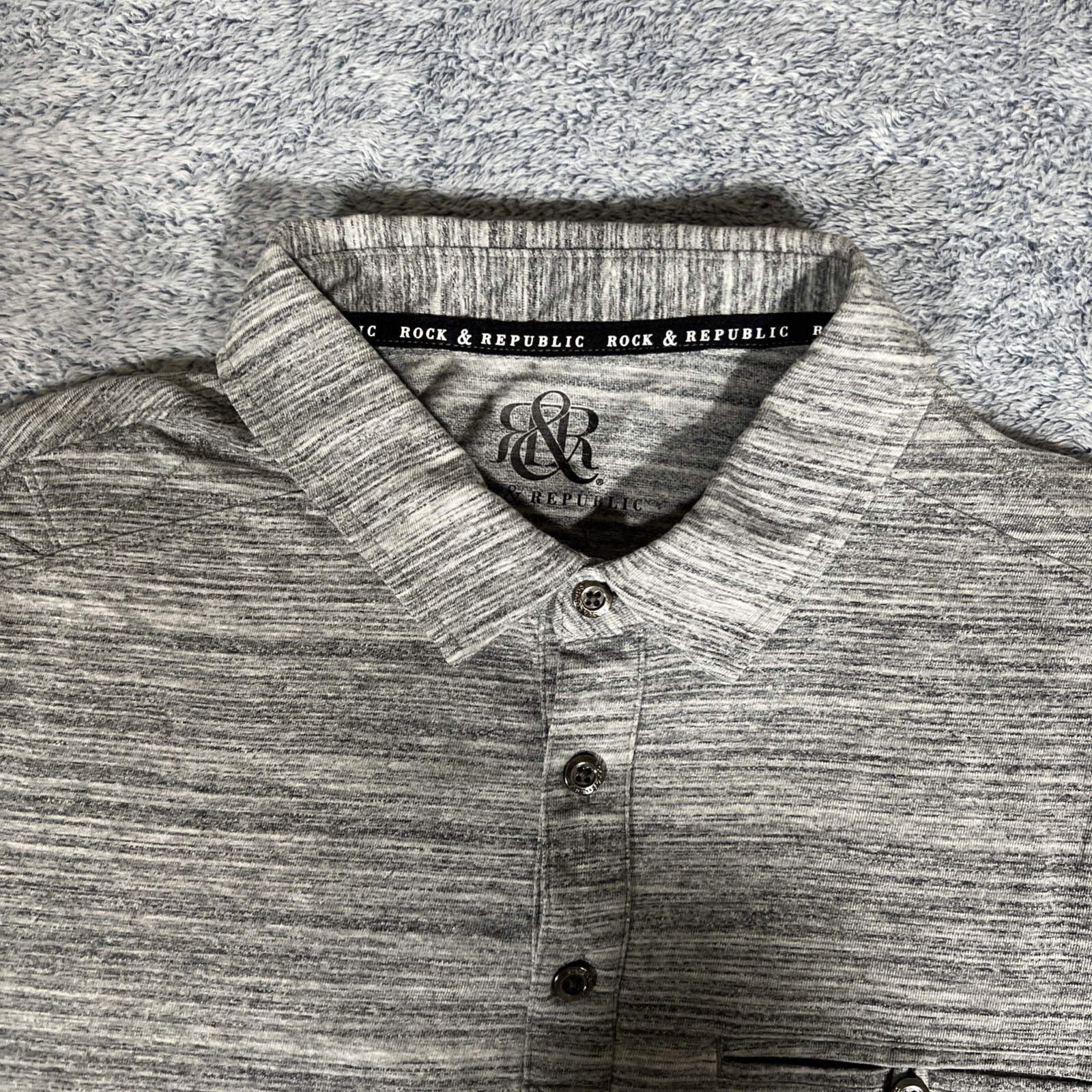 как выглядит Rock Republic Short Sleeve Polo Mens Medium Heather Gray Front Pocket фото