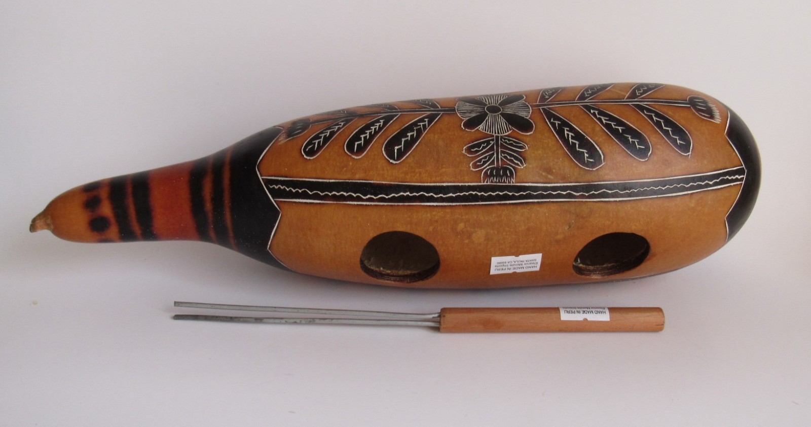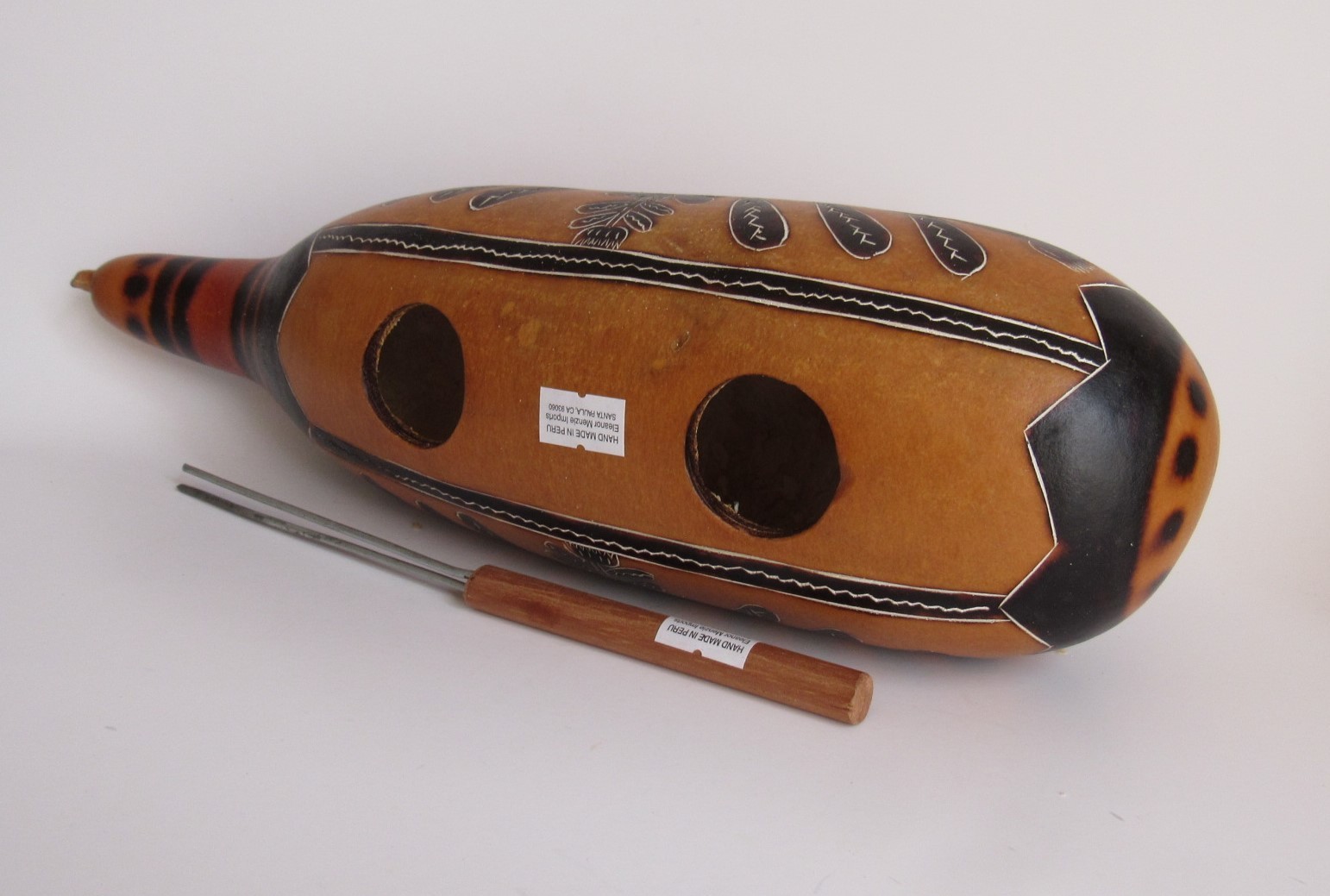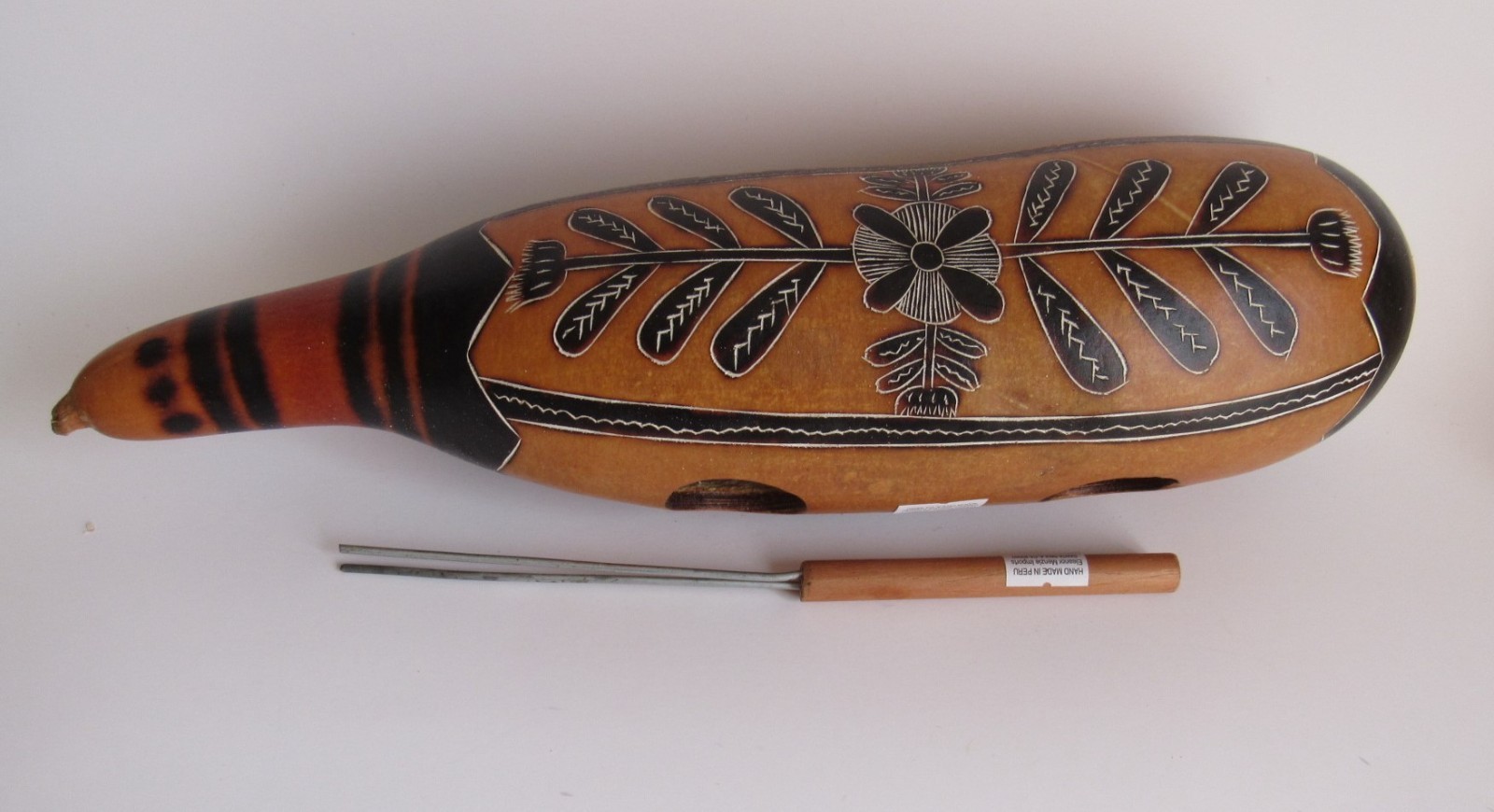Unique Peruvian Guiro With Scraper Percussion Musical Instrument 12 1/4H