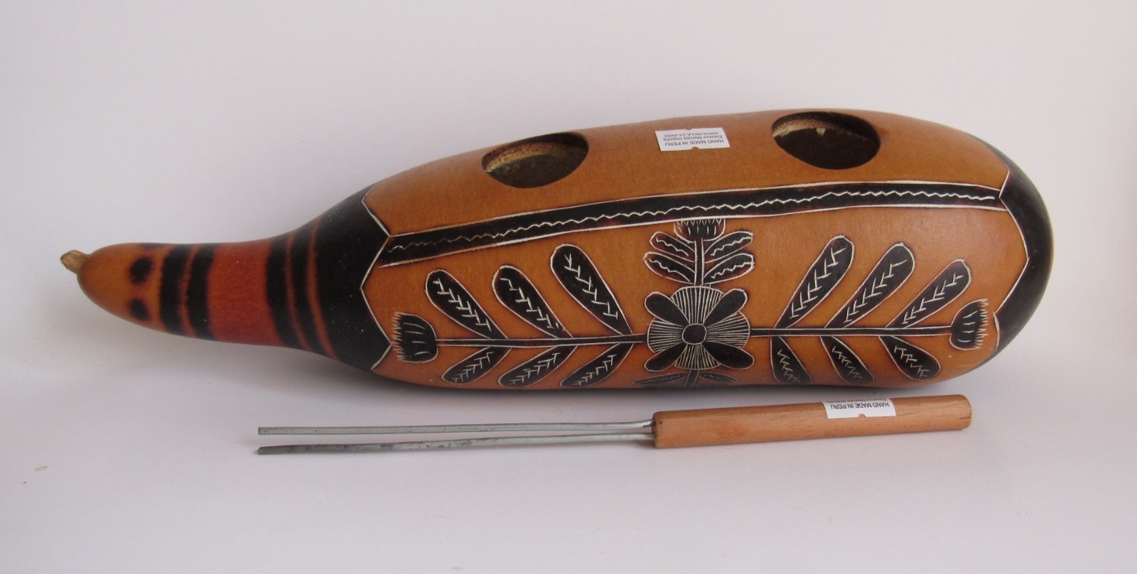 как выглядит Unique Peruvian Guiro With Scraper Percussion Musical Instrument 12 1/4"H фото