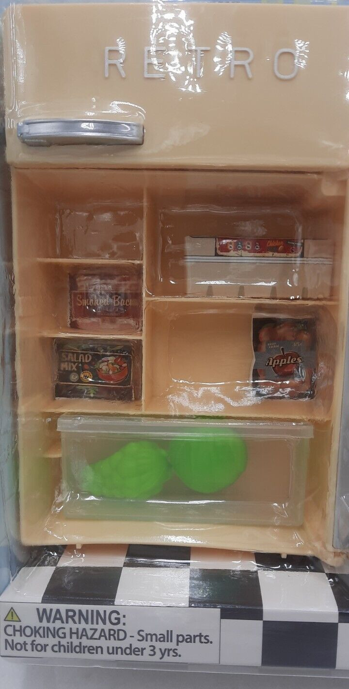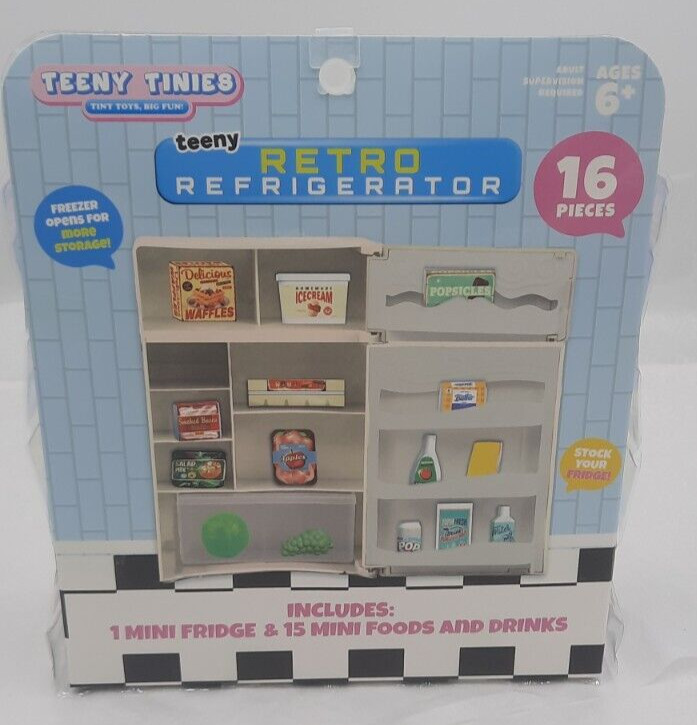 Teeny Tinies RETRO REFRIGERATOR 16 Piece Tan Mini Playset Toy NEW