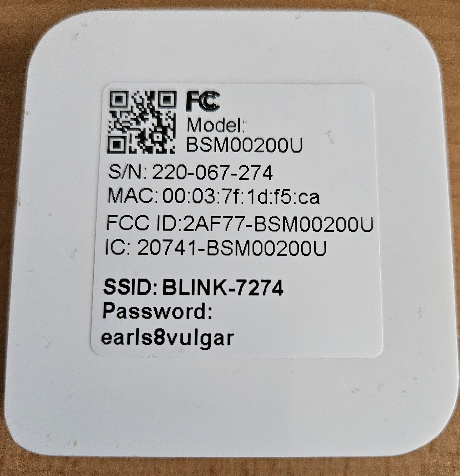 Blink Camera BCM00100U and Sync Module BSM00200U