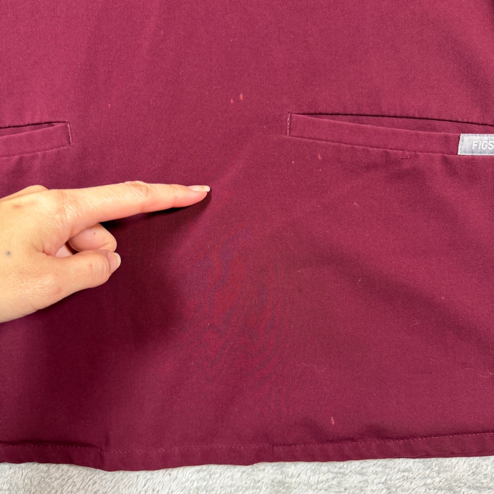 FIGS Casma Scrub Top Womens Medium Burgundy V-Neck Three Pocket FW1100
