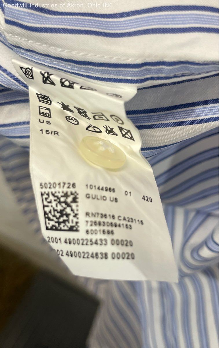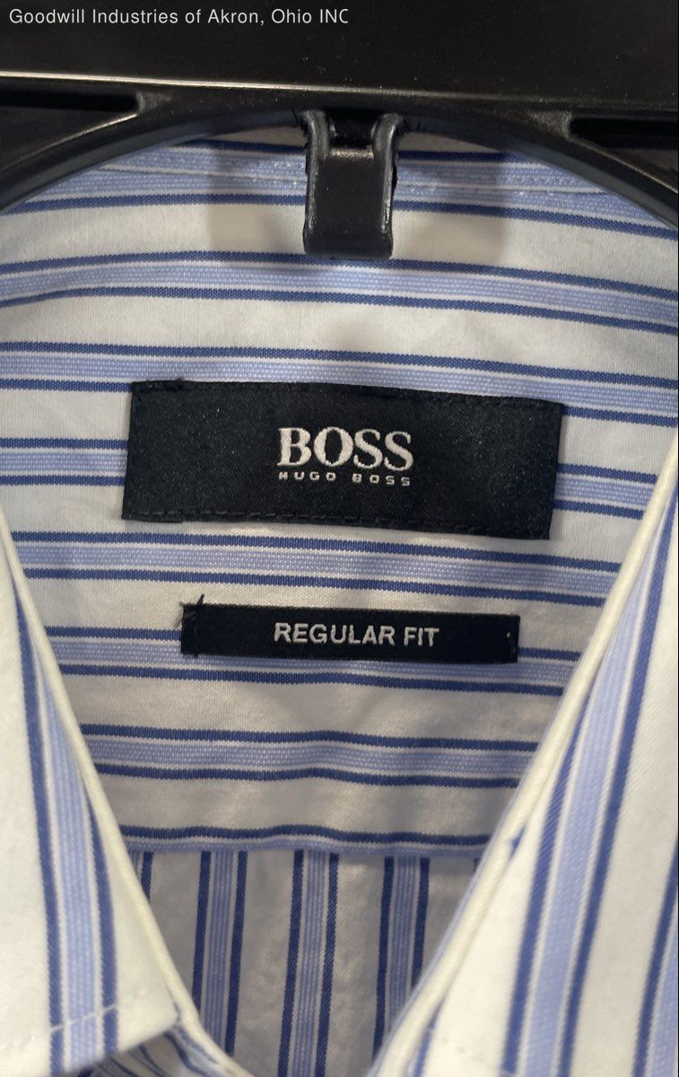 как выглядит Hugo Boss Mens Gulio Blue Striped Button Up Dress Shirt Sz 15 32/33 COA фото