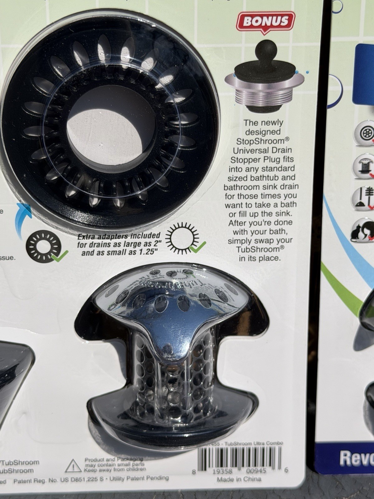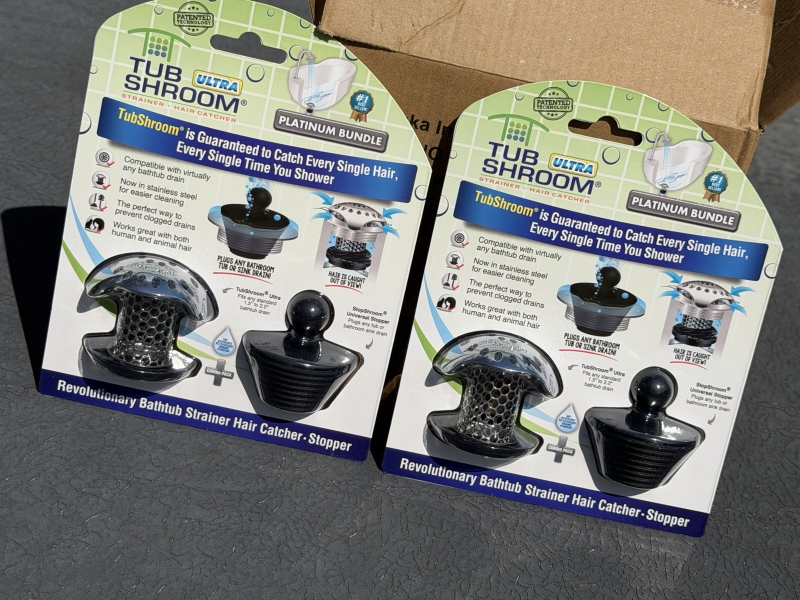 2 TubShroom Ultra Platinum Bundle Stainless Hair Catcher Stopper Combo Black New