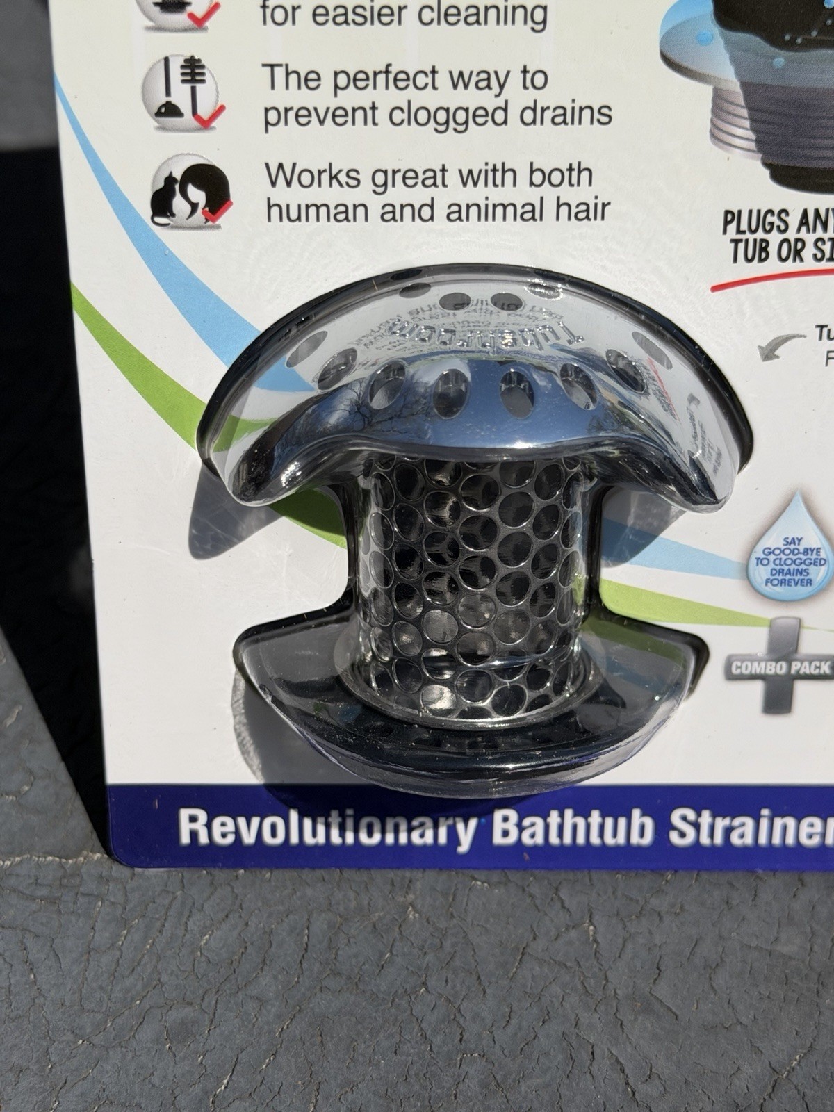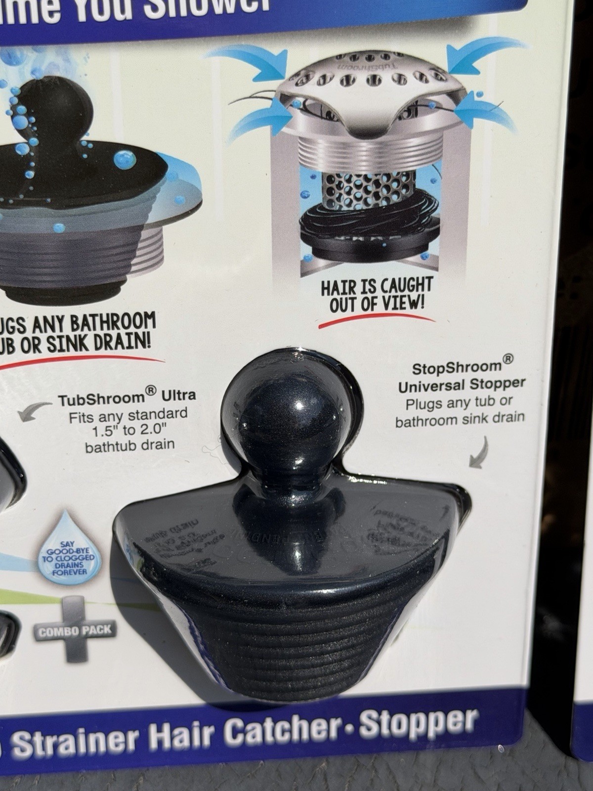 как выглядит 2 TubShroom Ultra Platinum Bundle Stainless Hair Catcher Stopper Combo Black New фото