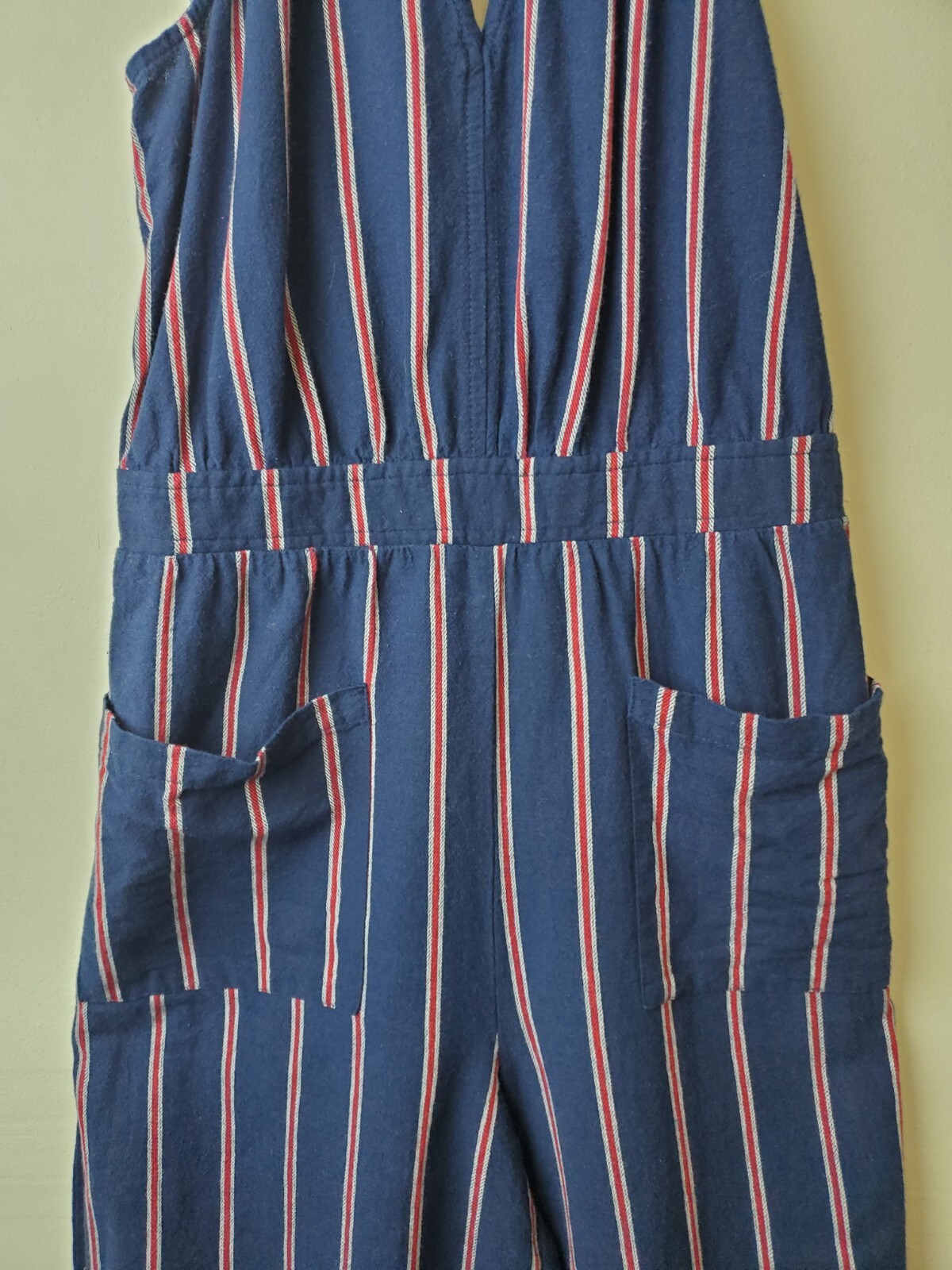 как выглядит Universal Thread Small Striped Jumpsuit Wide-Leg Crop Blue Cotton Pockets фото