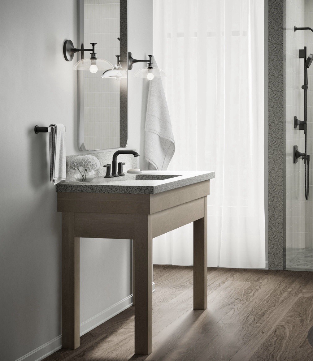 как выглядит NEW Kohler Terzet 3-Hole Bathroom Faucet Matte Black 1.2 GPM Widespread фото