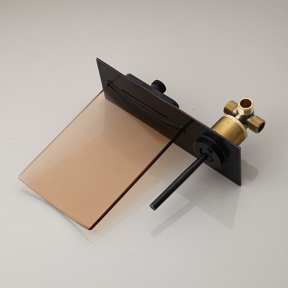Brown Glass Waterfall Black Faucet Wall Mounted Bathtub Basin sink Mixer Tap