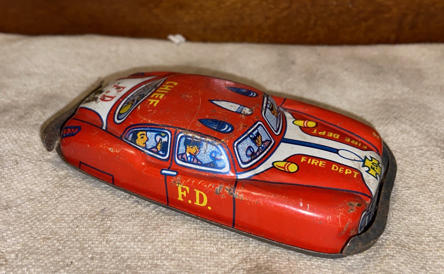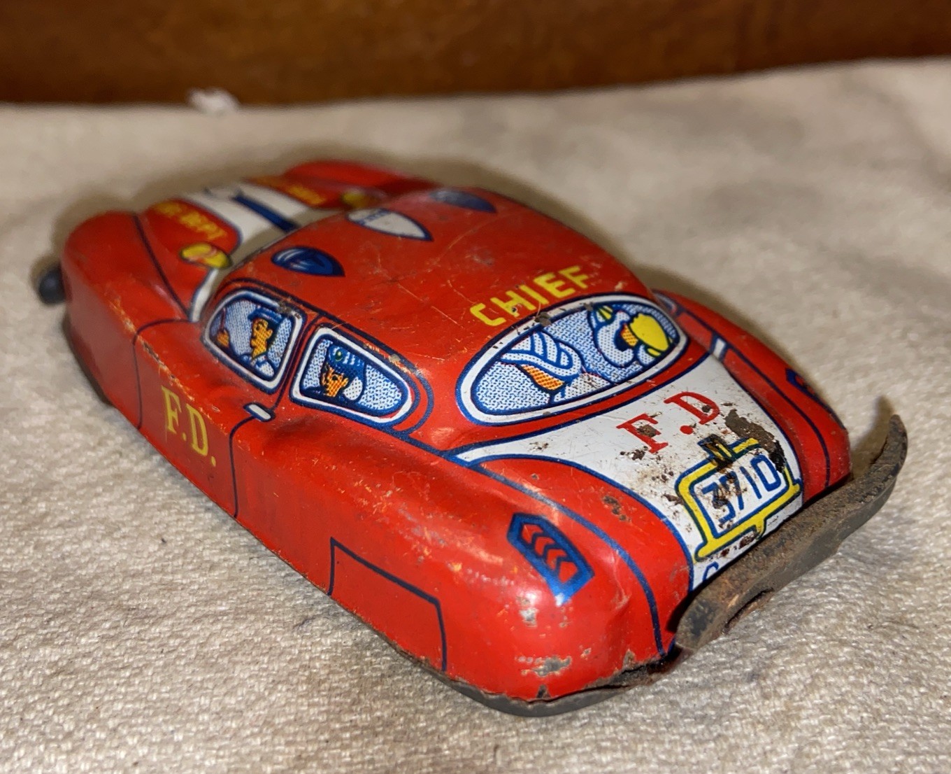 как выглядит Vintage 4 Tin Litho Friction Motor Fire Chief Car фото