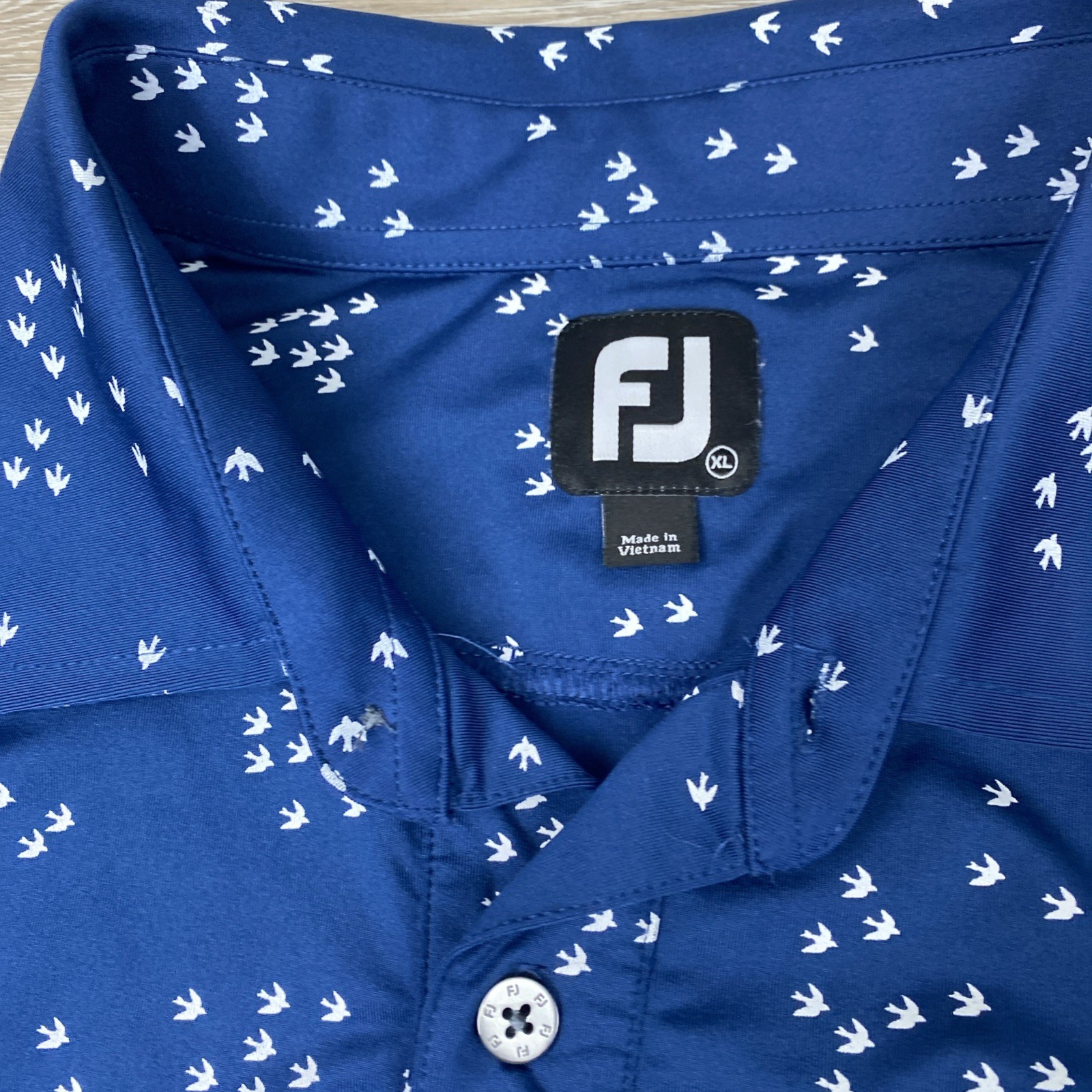 FootJoy Golf Polo Shirt Mens XL Blue White Bird Print Performance Casual
