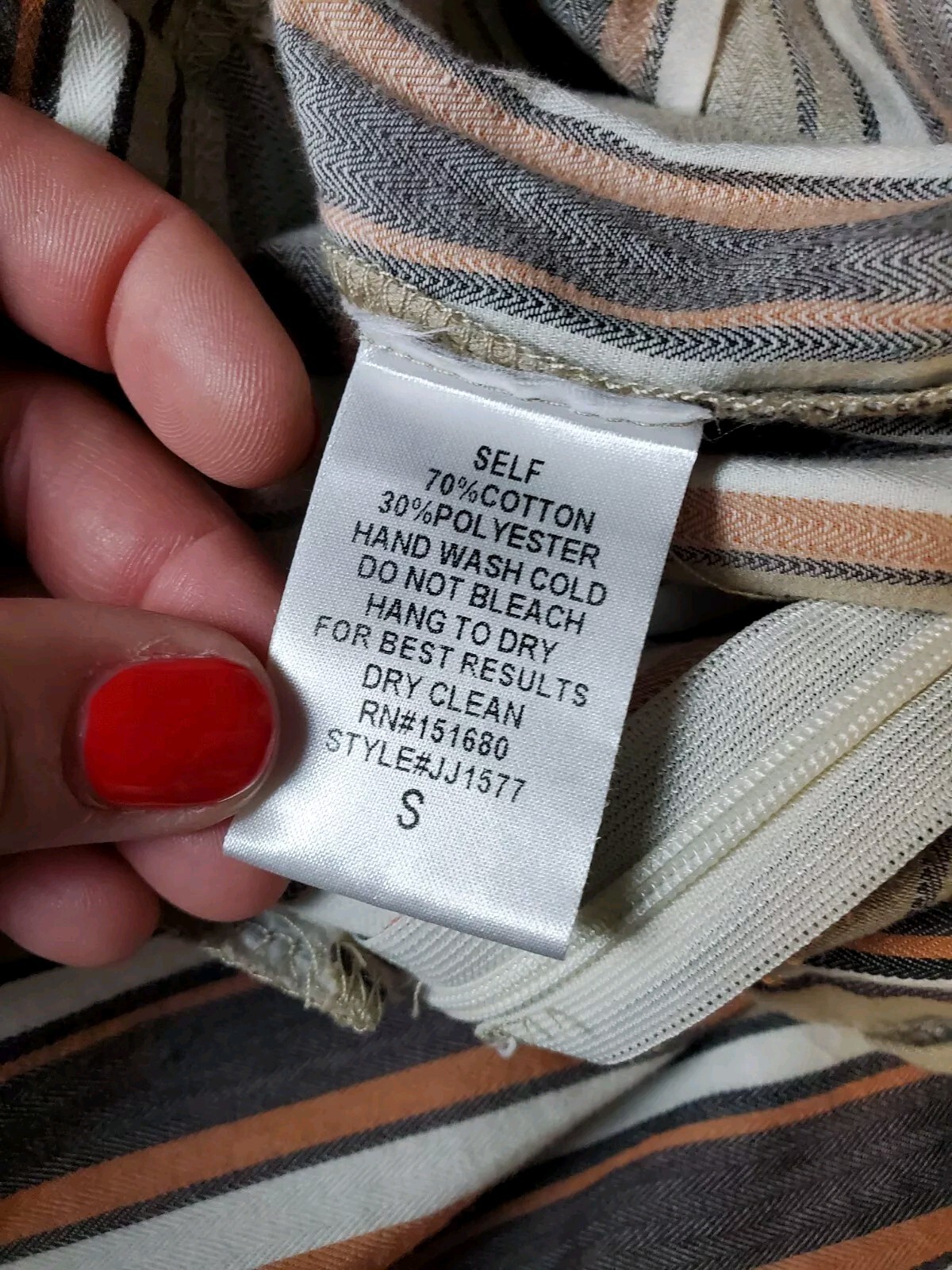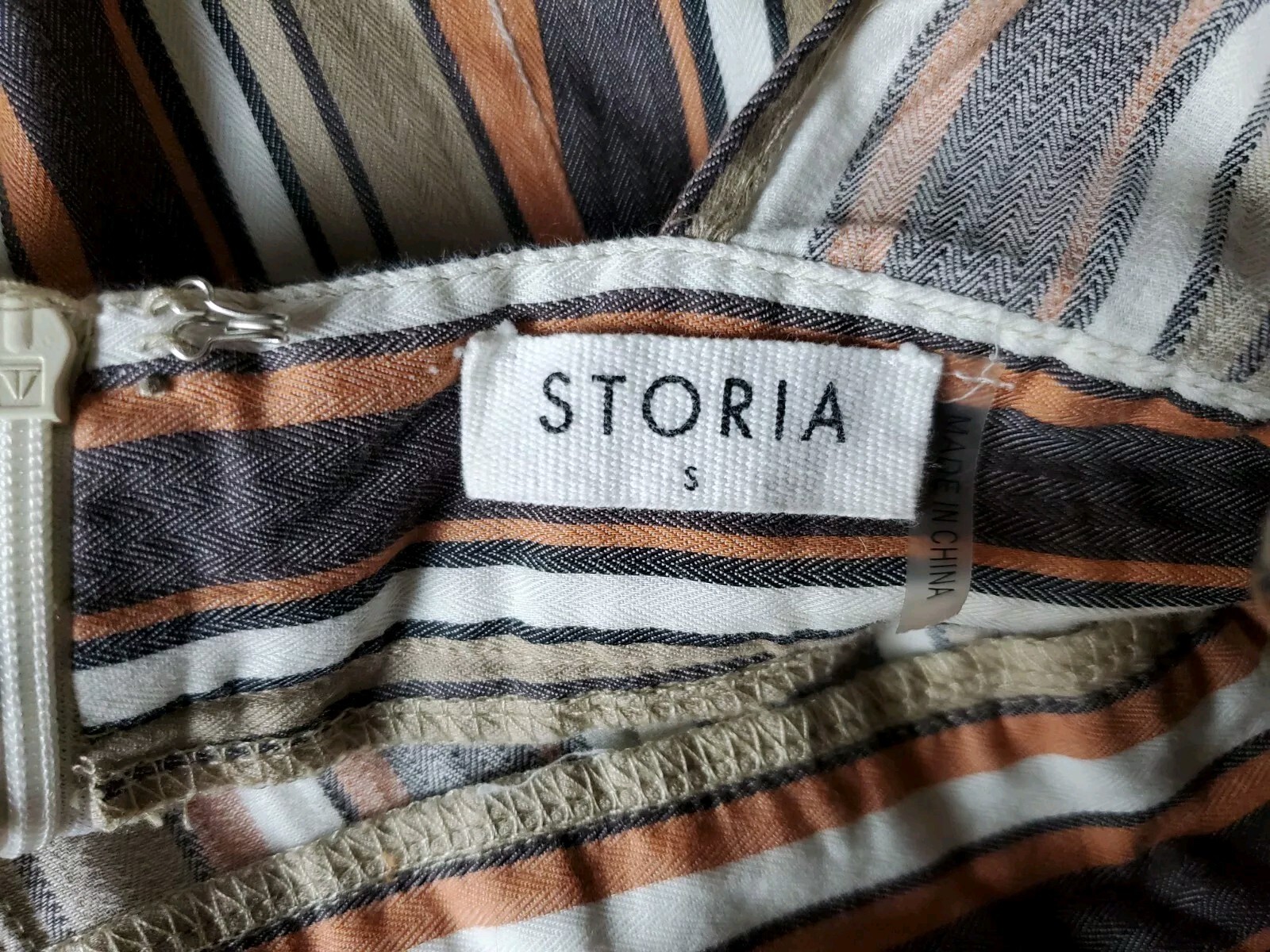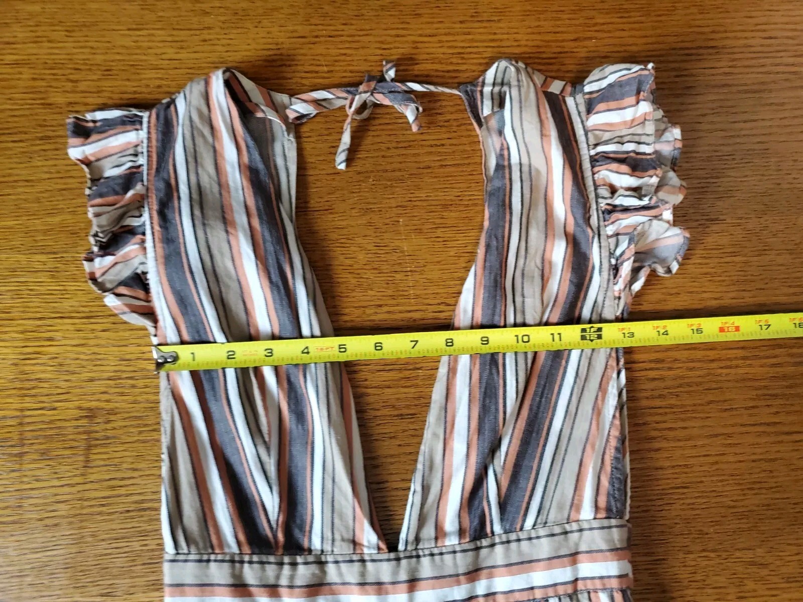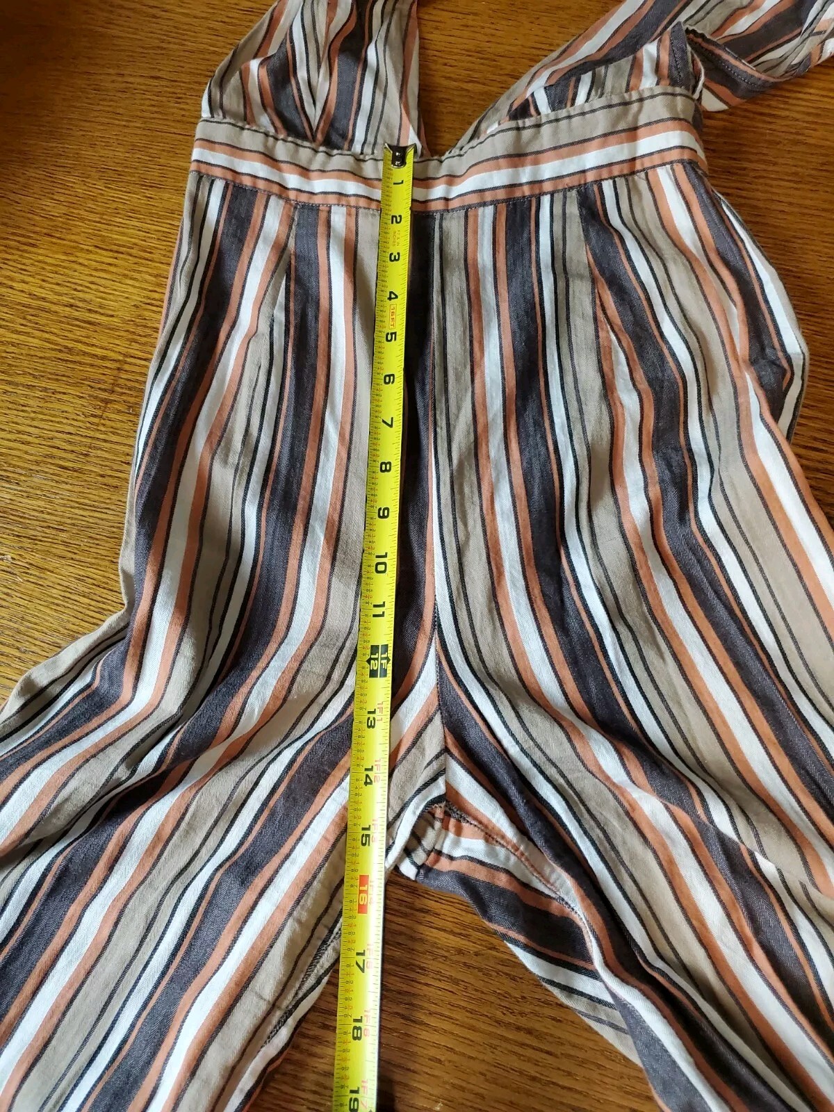 как выглядит STORIA Womens Small Jumpsuit Striped Wide-Leg Ruffles Lowcut V-Neck фото
