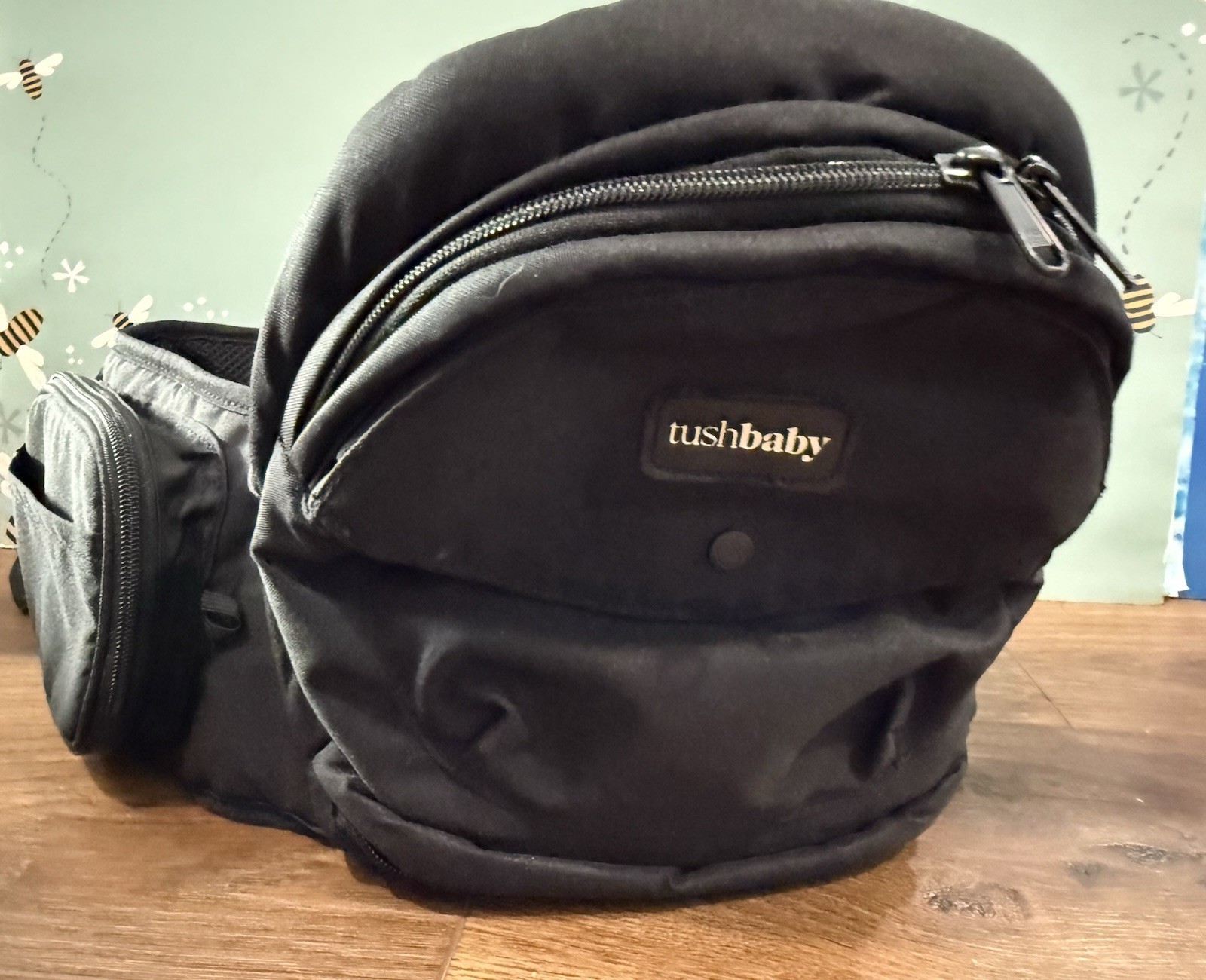 TushBaby Black Hip Seat Baby Carrier with Storage Pocket Buckle Closure