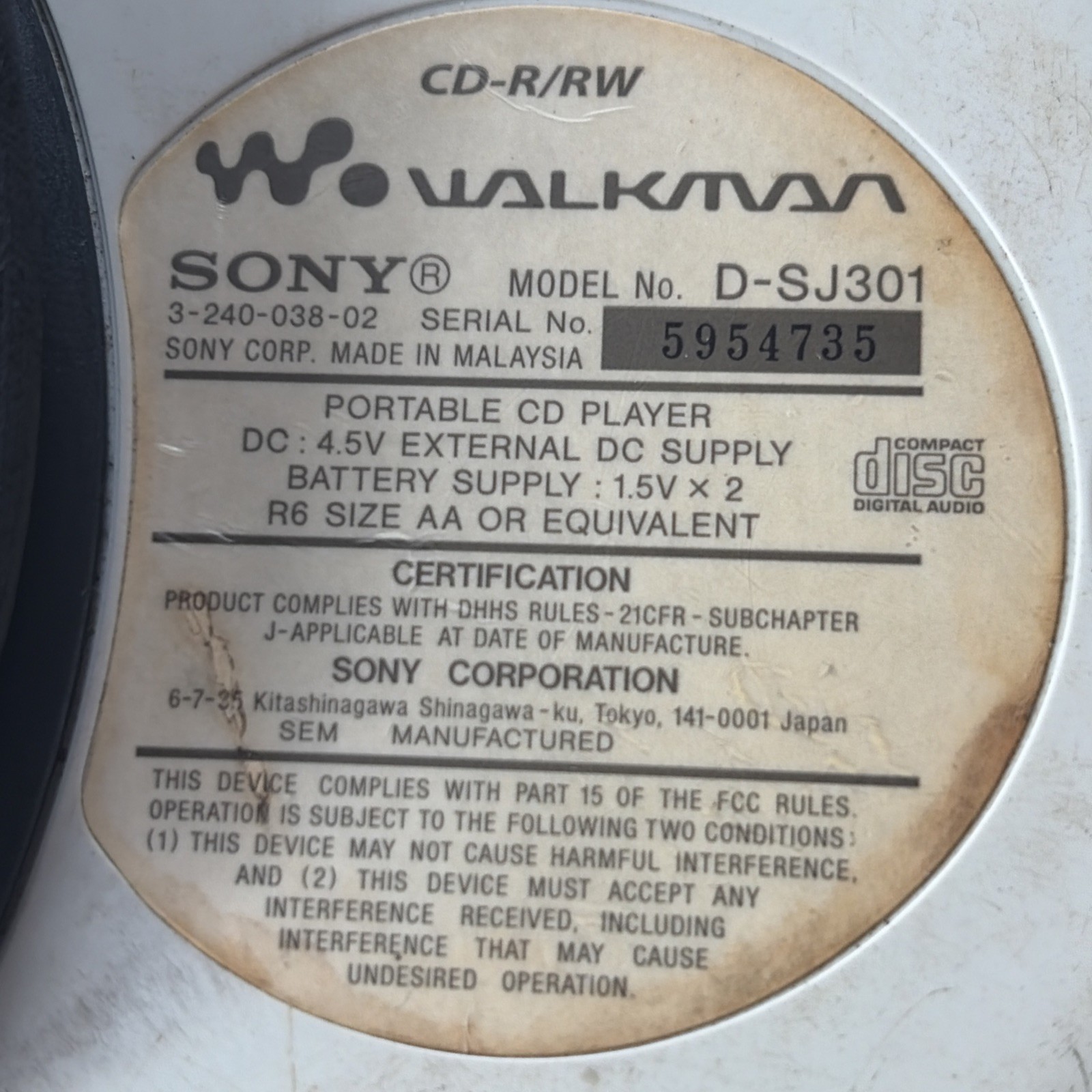 Sony D-SJ301 S2 Sports CD Walkman Portable Personal CD Player Tested Read Desc