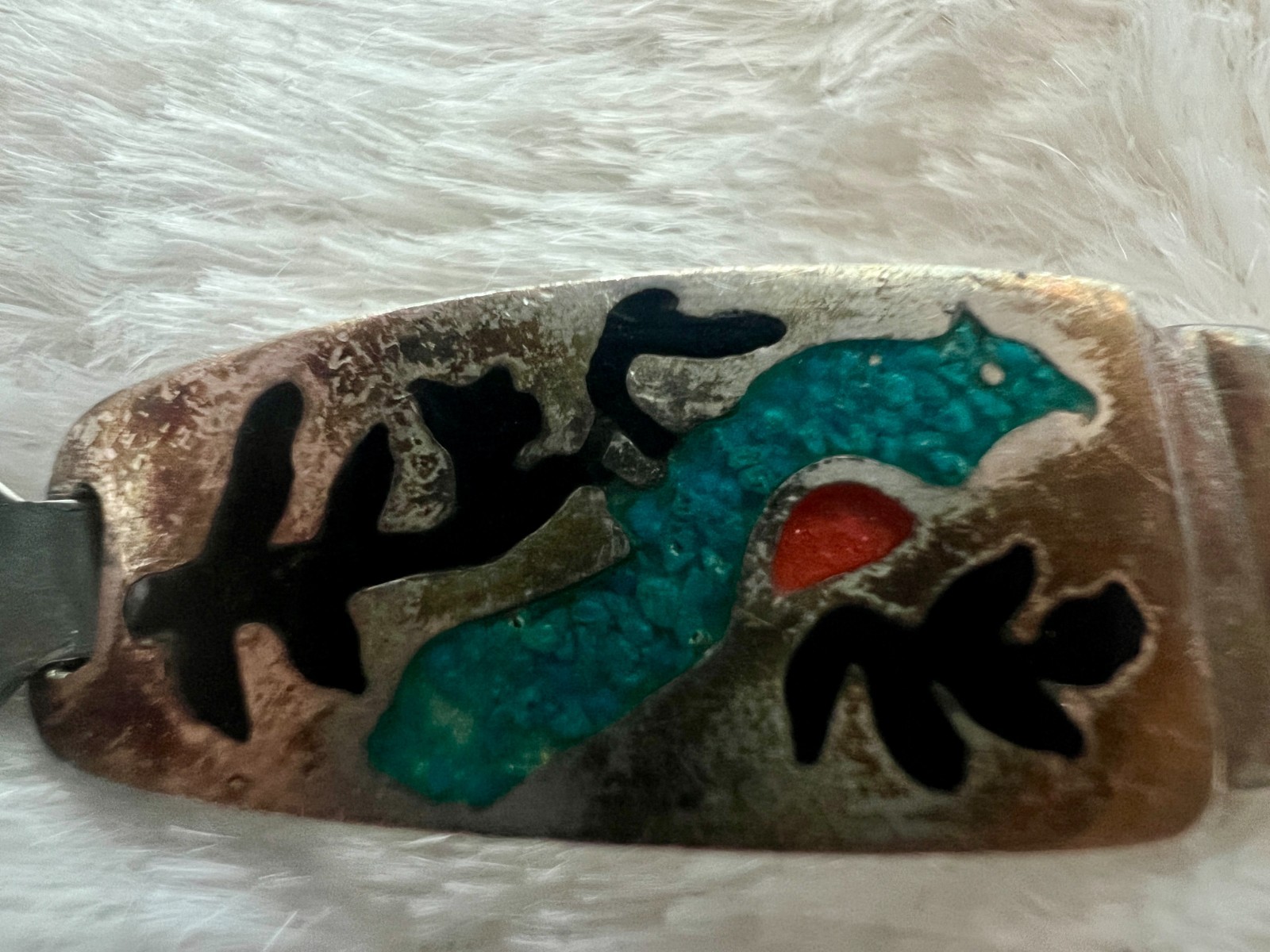 как выглядит Vintage Watch Band Tips Southwestern Kokopelli Bird Turquoise Inlay Stretch USA фото