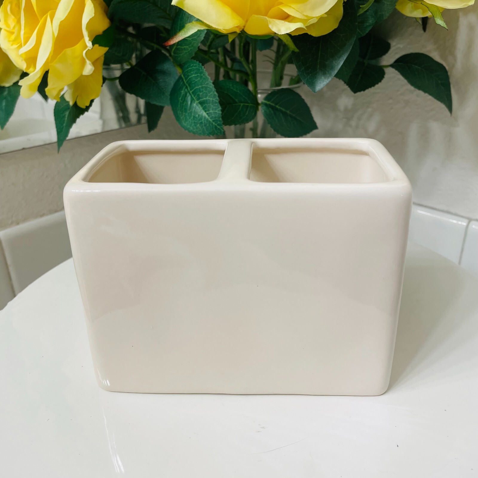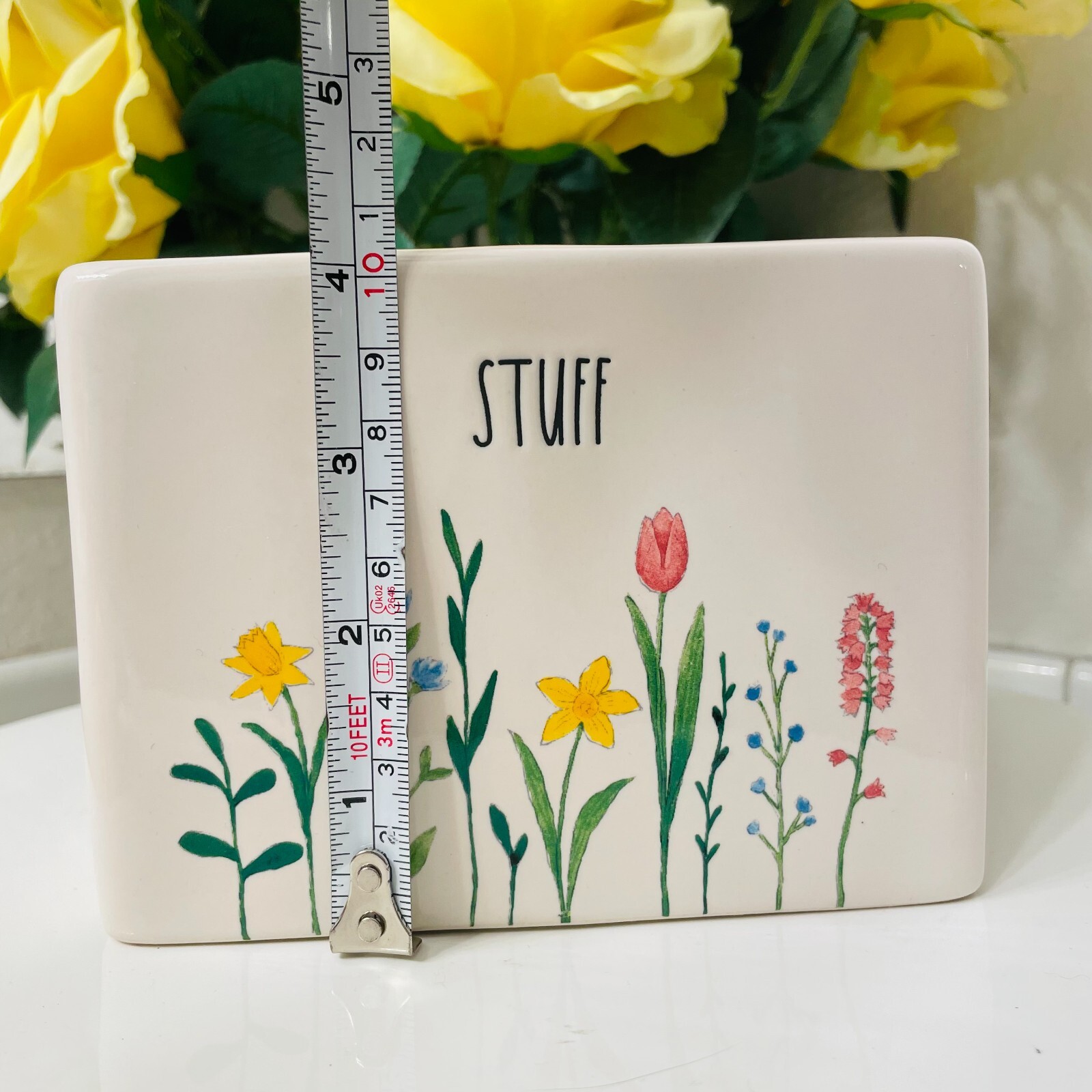 Rae Dunn STUFF Floral Bathroom Divided Cup Holder For Makeup Pencil Toothbrush..