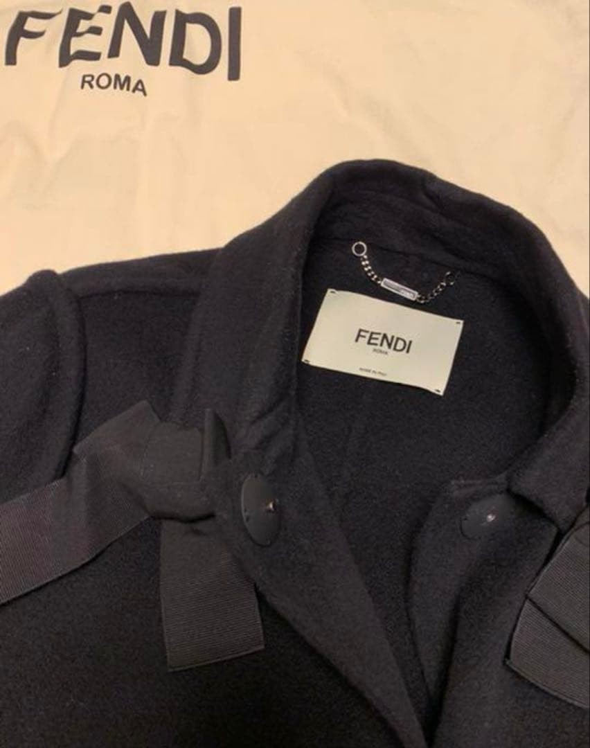 как выглядит USED FENDI CAPE COAT, BLACK, SIZE 38, LEATHER CUT POCKETS VERYGOOD фото