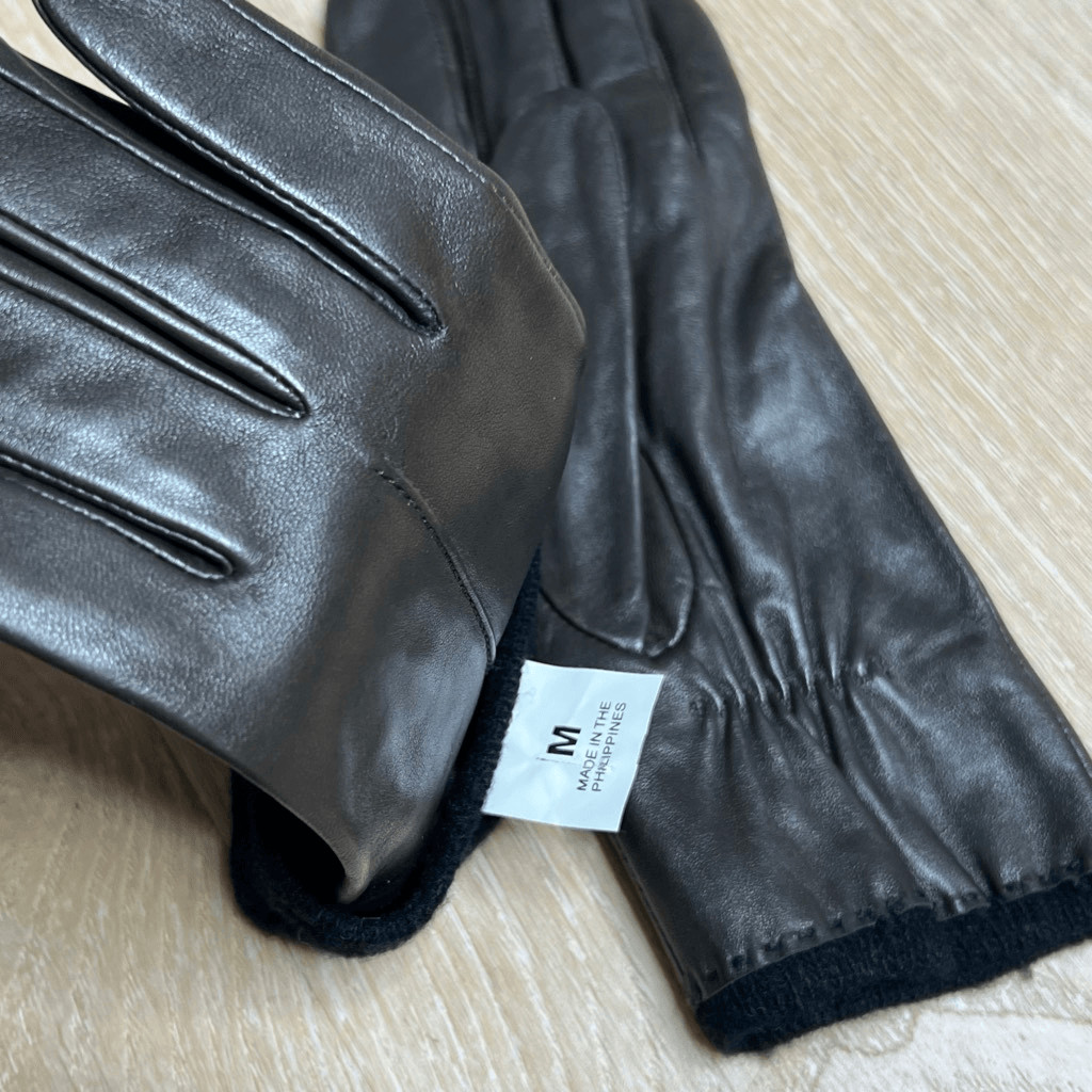 Vintage, Expresso Brown Genuine Leather Gloves, Knit Interior, Top Seam, Medium