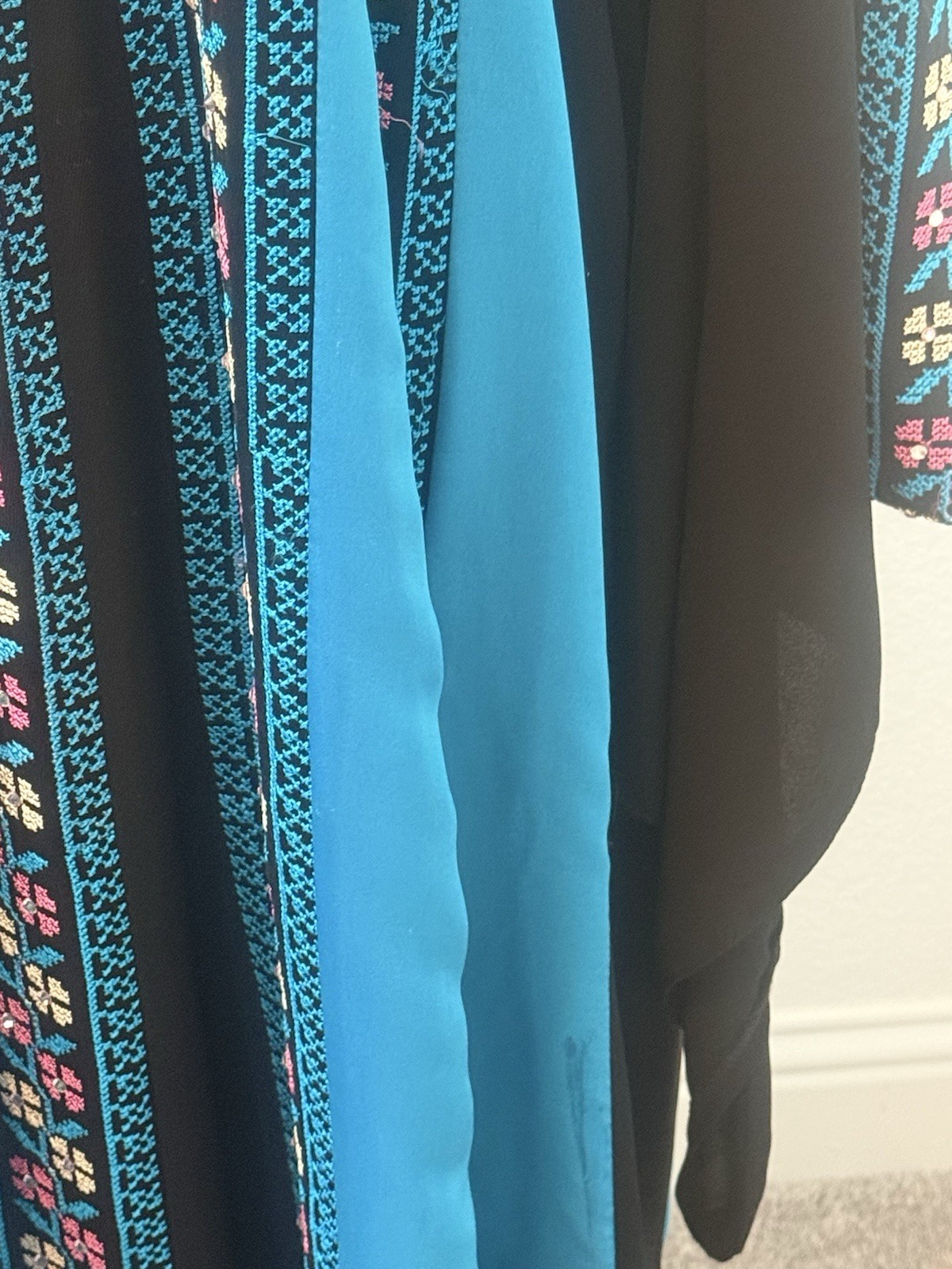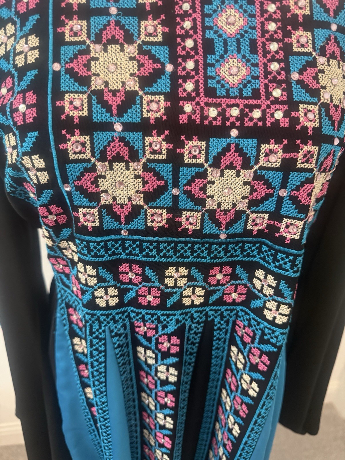 Embroidered Thoub. Rhinestones. Satin With Belt . Size 1 Large/ Medium . Middle