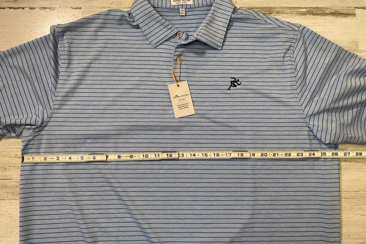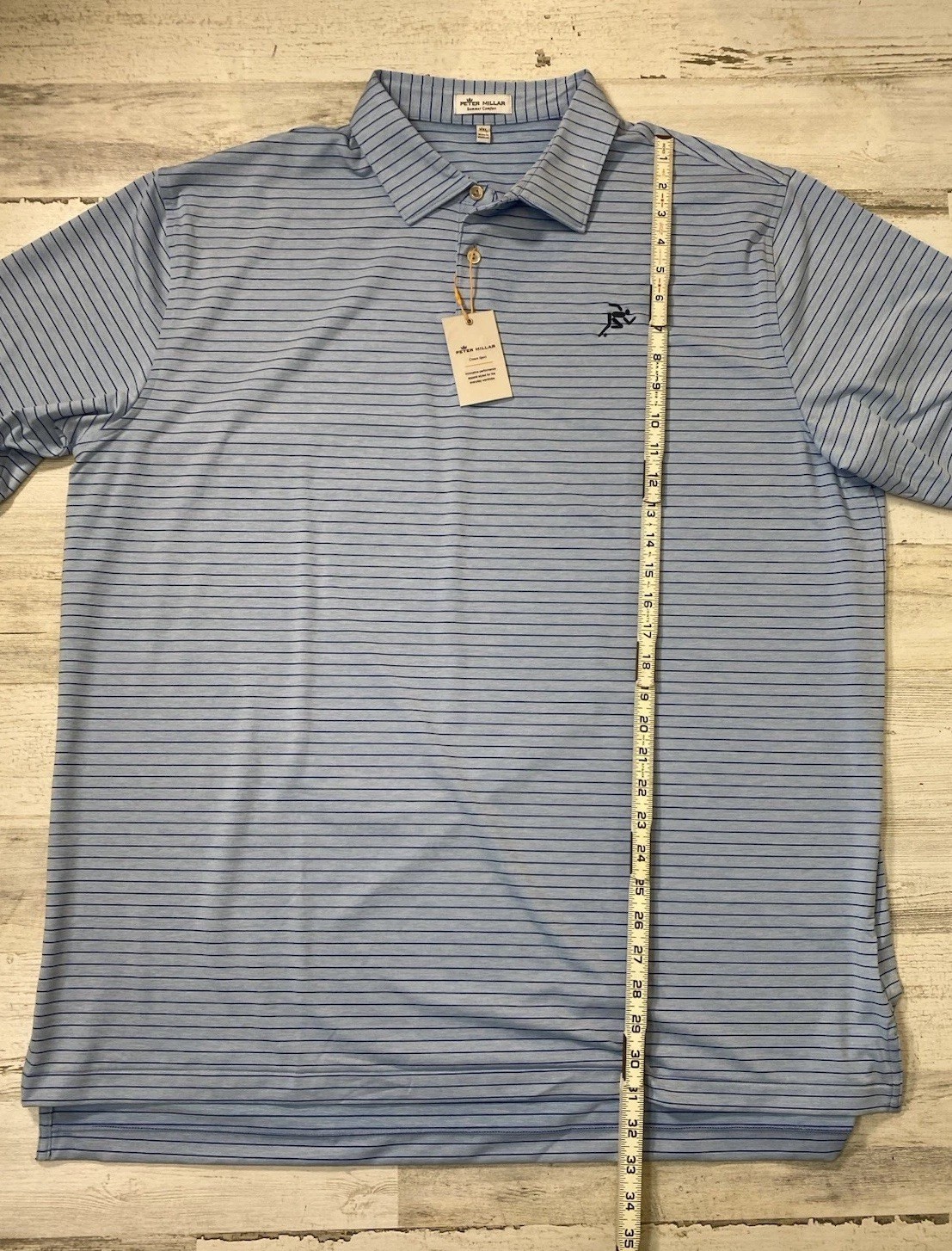 как выглядит Peter Millar Crown Sport Mens Size XXL Blue Striped Summer Comfort Golf Polo фото