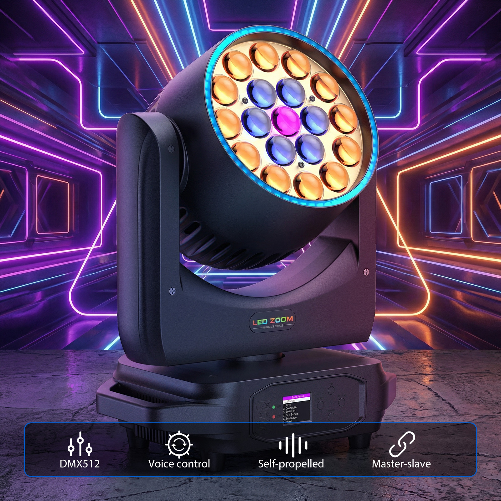 RGBW 19x20W LED Moving Head Zoom Wash Light DMX Stage Lighting For KTV Bar