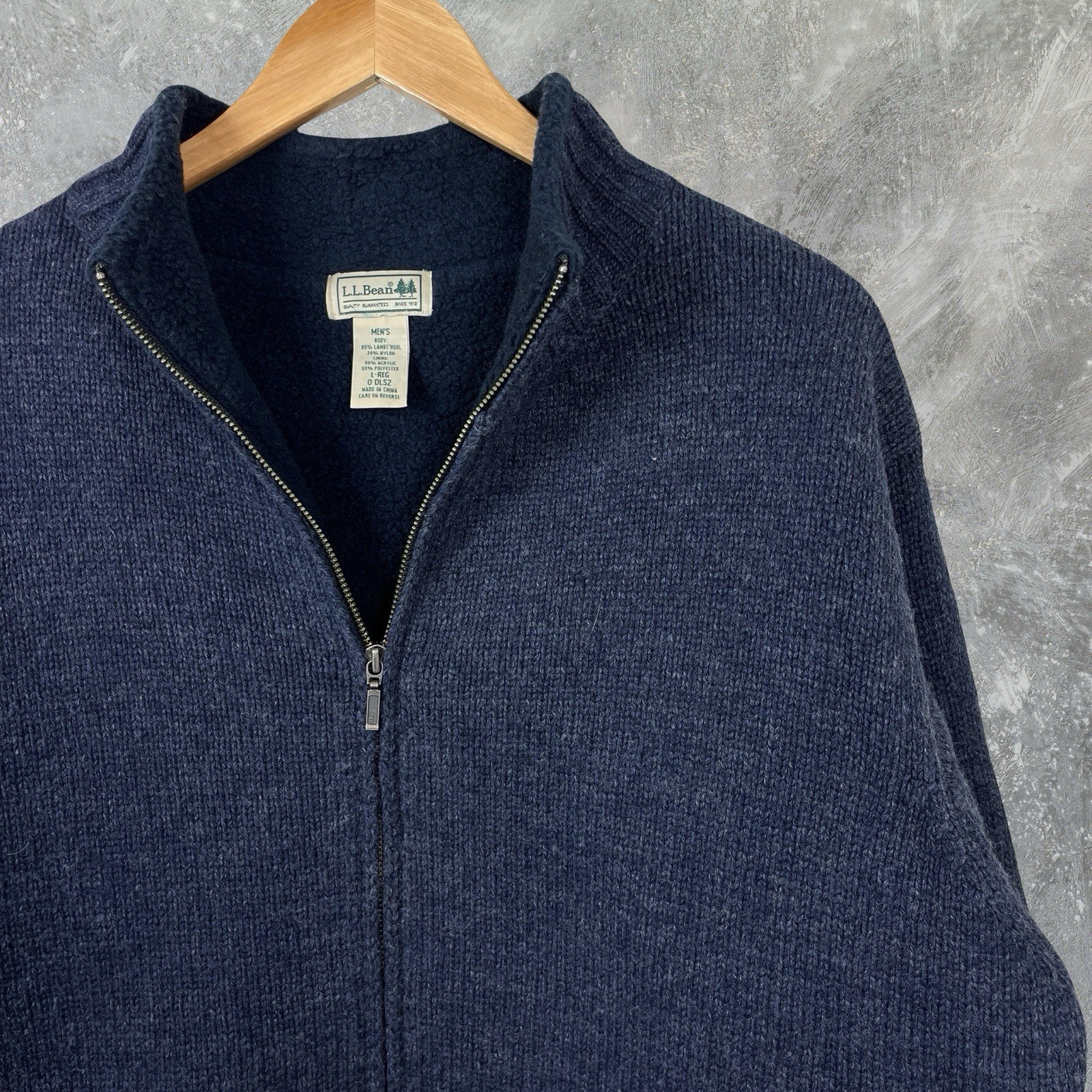 как выглядит LL Bean Sweater Lambswool Tight Knit Full Zip Fleece Lined Blue Mens Large фото