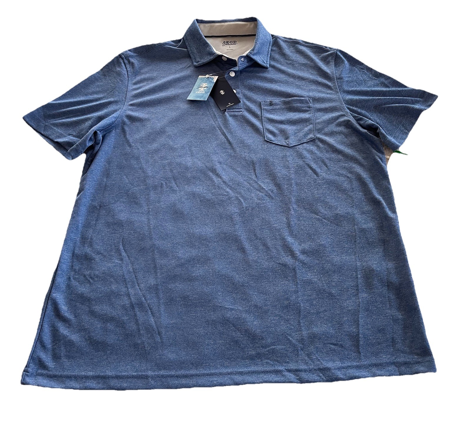 IZOD Saltwater Sun Shield Polo UPF-30 Breathable Blue Quick Dry Mens Large NWT