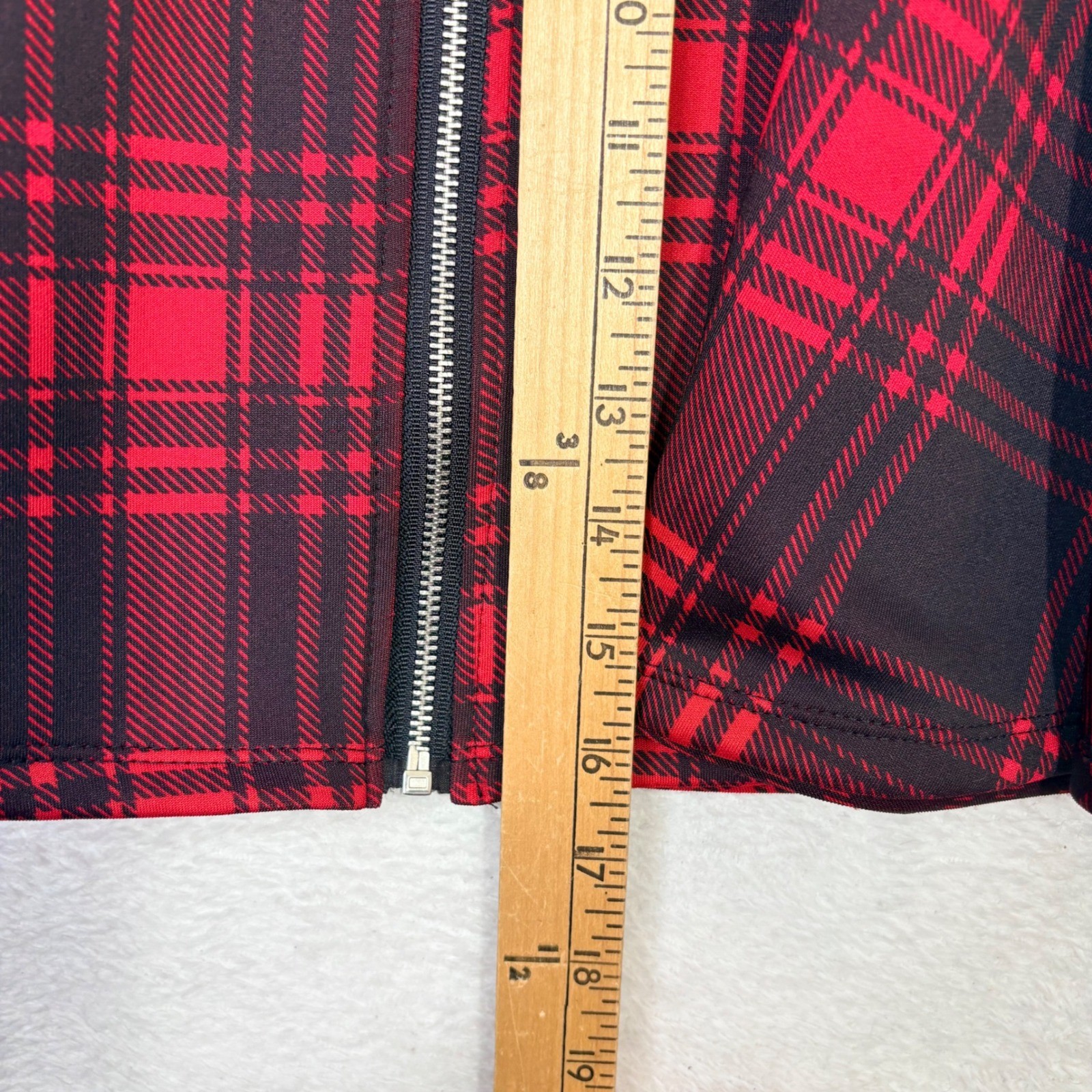 как выглядит Hot Topic Red Black Plaid Zipper Front Skater Skirt with Pockets Medium Punk Emo фото