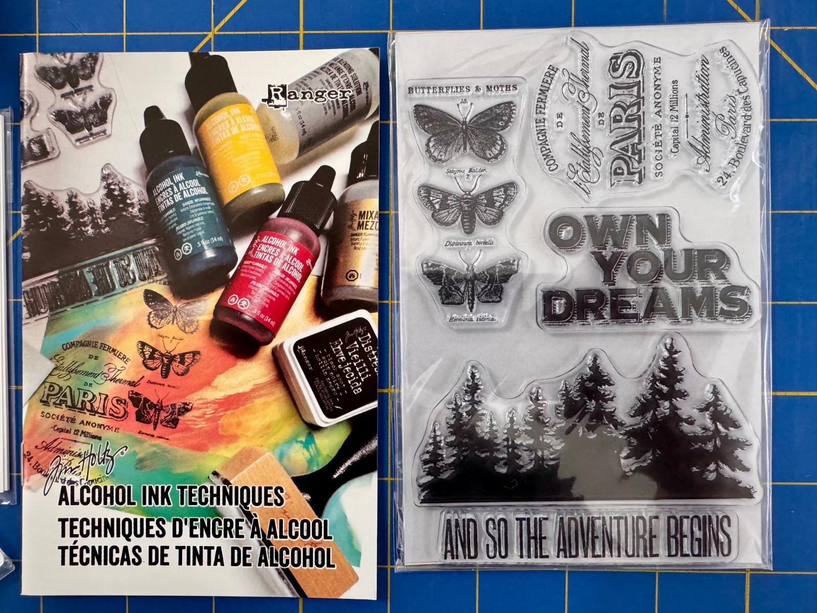Tim Holtz Alcohol Ink Kit Own Your Dreams, Adventure, Butterflies, Forest Stamps
