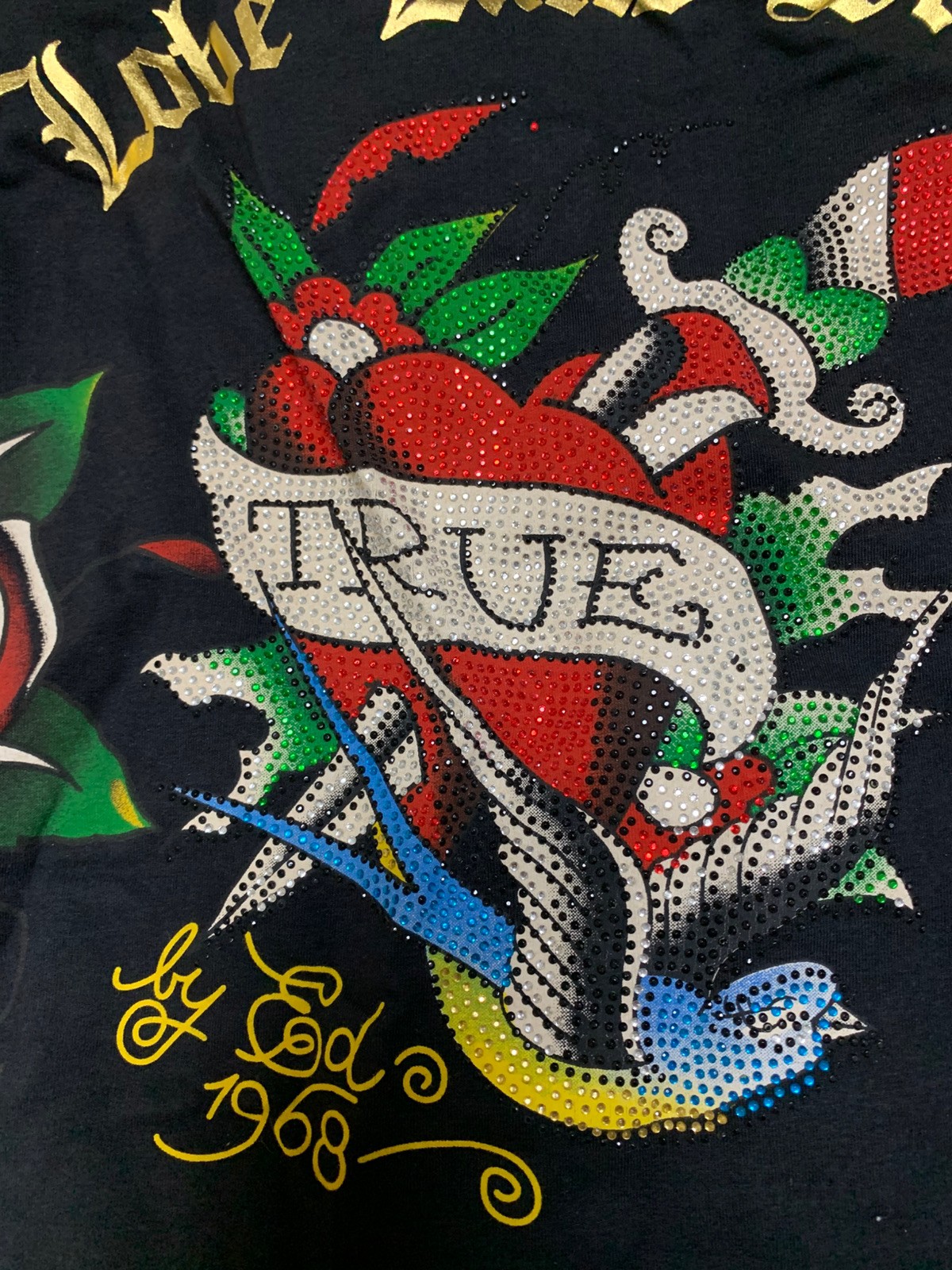 как выглядит Ed Hardy Zip Up Hoodie Women s Black L Stretch New Tags Rhinestone Tattoo Gold фото