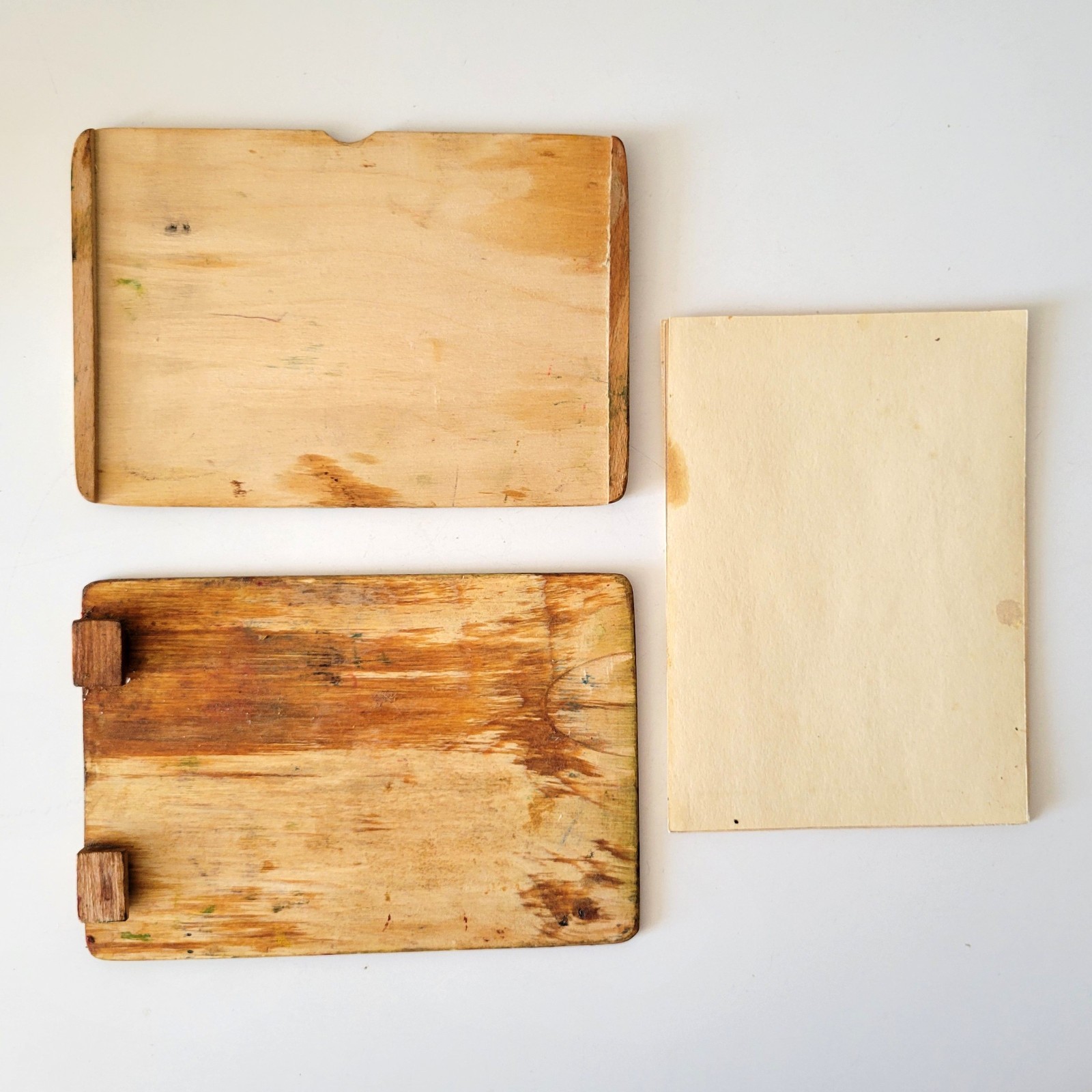 как выглядит Vintage Miniature easel 70s Wood artist box Soviet painting set Palette Antique фото
