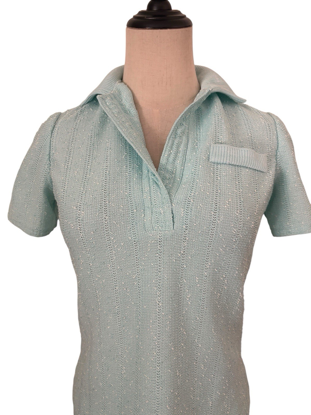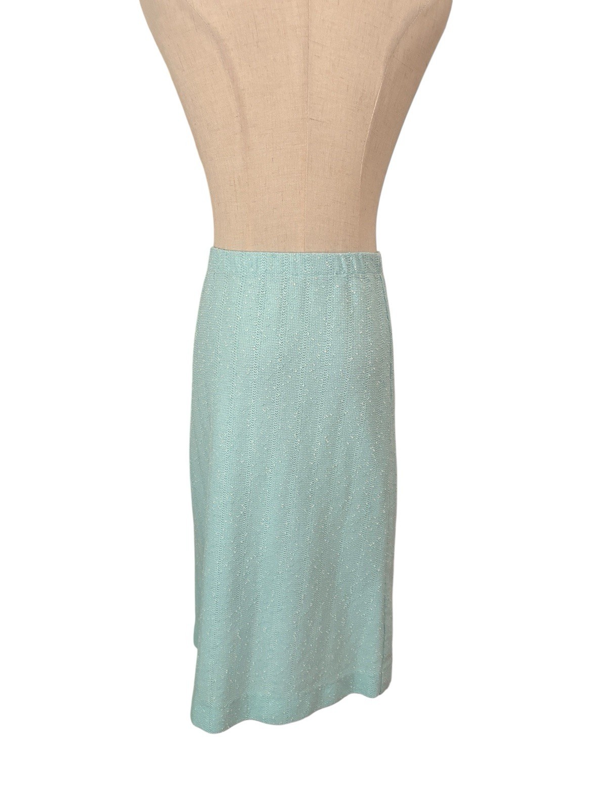 как выглядит Vtg 70s Leslie Fay Petite Knit Skirt Set Aqua Blue Polo Top Pencil Skirt Sz S фото